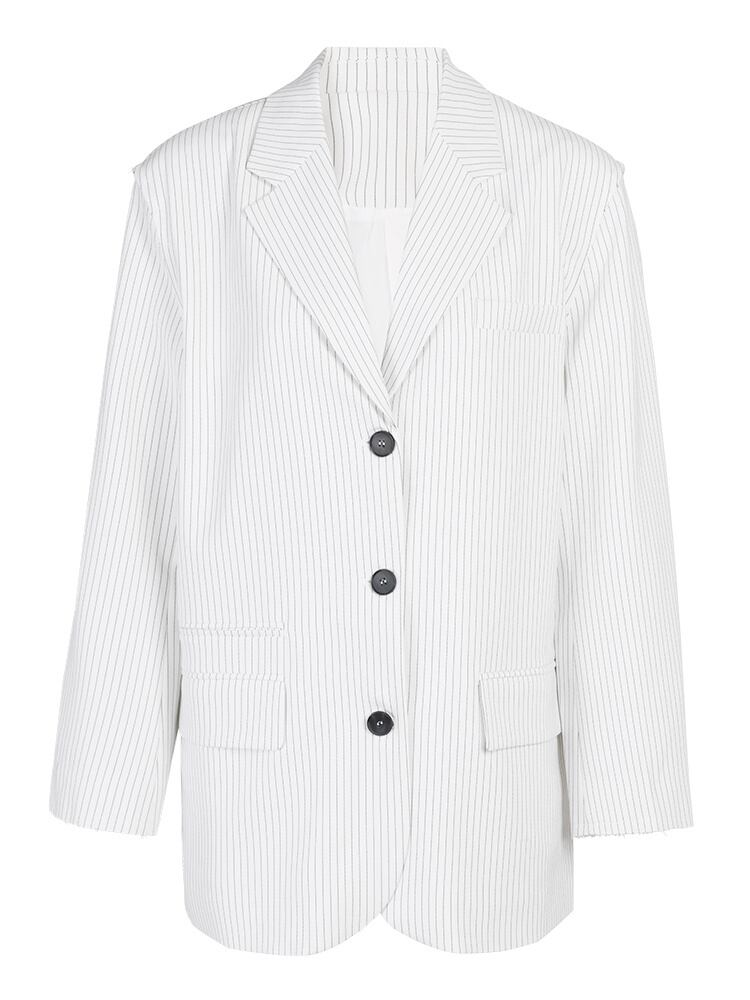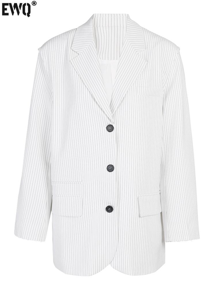 [EWQ] ブレザーノッチカラールーズシングルブレスト長袖ストライププリントスーツジャケット夏オフィスレディコート ロング サマー 夏物 会社 学校 通勤や通学にも