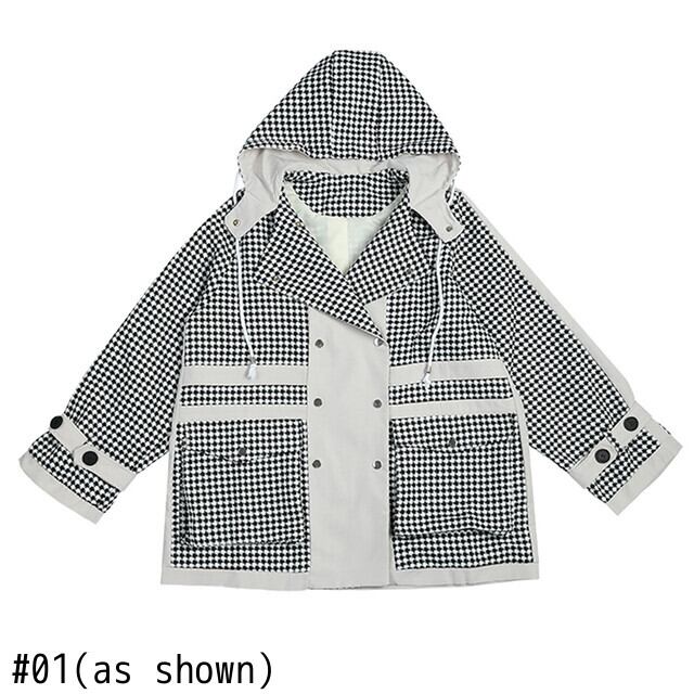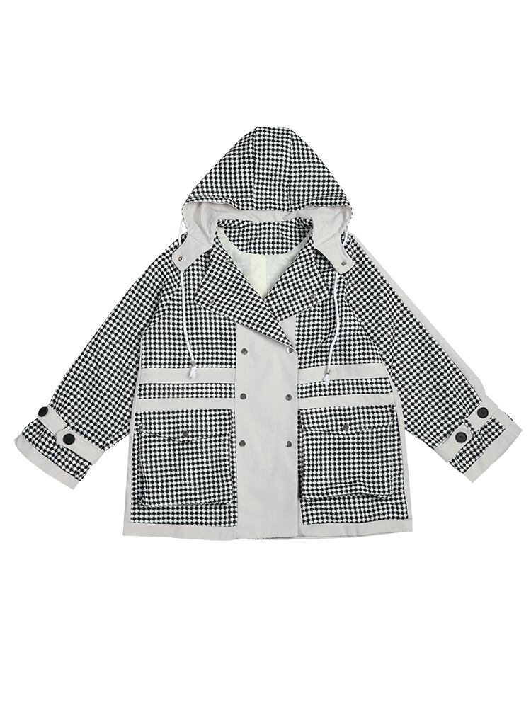 【EWQ】春 コントラストチェック チェック柄 トレンド ジャケット コート ターンダウンカラー パッチワーク 長袖 アウター ロング スプリング 春物