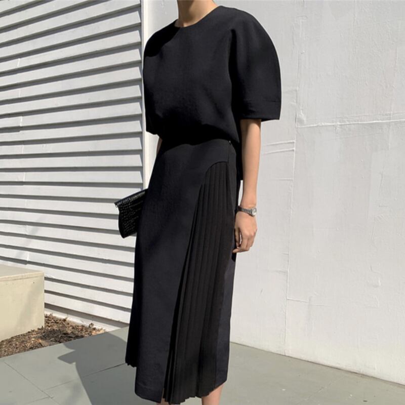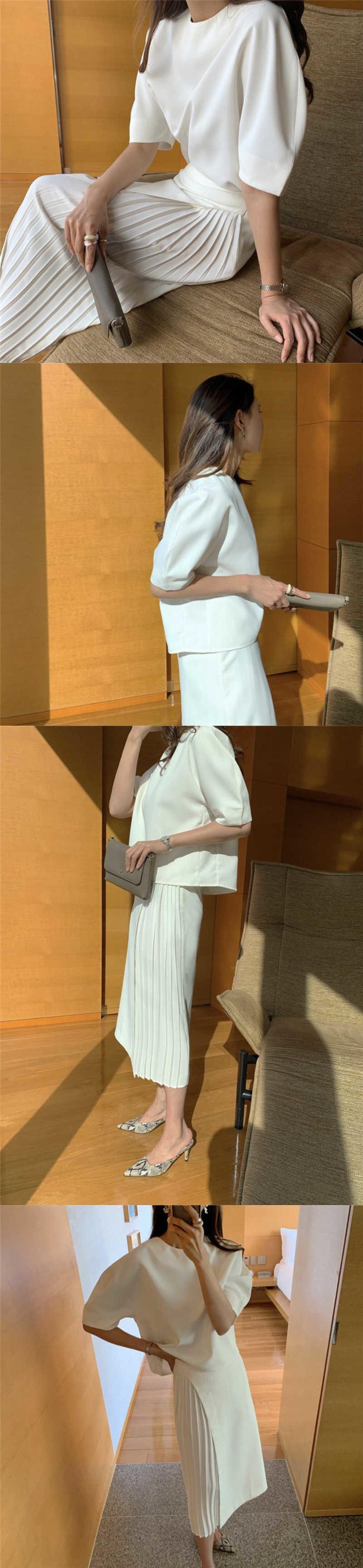 【EWQ】オールマッチ ピュアカラー シンプル ホワイト ウエストサイドプリーツスカート ロングスカート レディース 16F1066