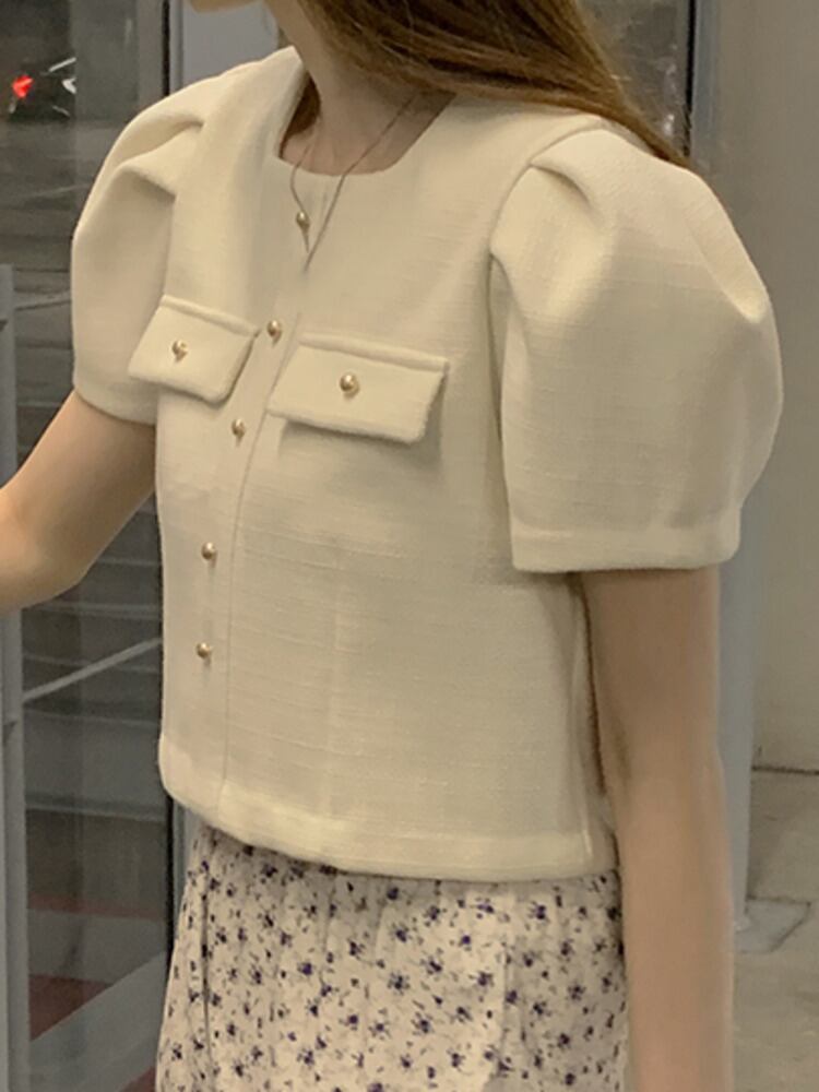 [EWQ] 気質メタル シングル ブレスト ジャケット スクエア ネック フェイク ポケット ルーズ ショート ジャケット コート夏潮 Y8452 サマー 夏物 スクウェア