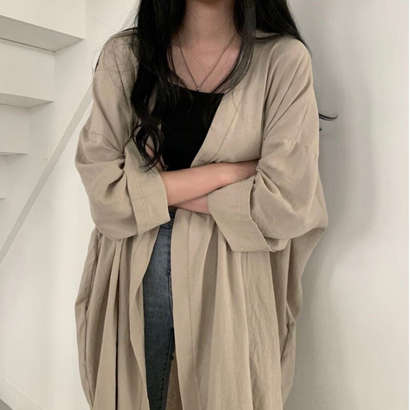 [EWQ] 長袖 トップス 日焼け止め レディース ロング カーディガン 夏 特大 リネン ブラウス 16Y256 サマー 夏物