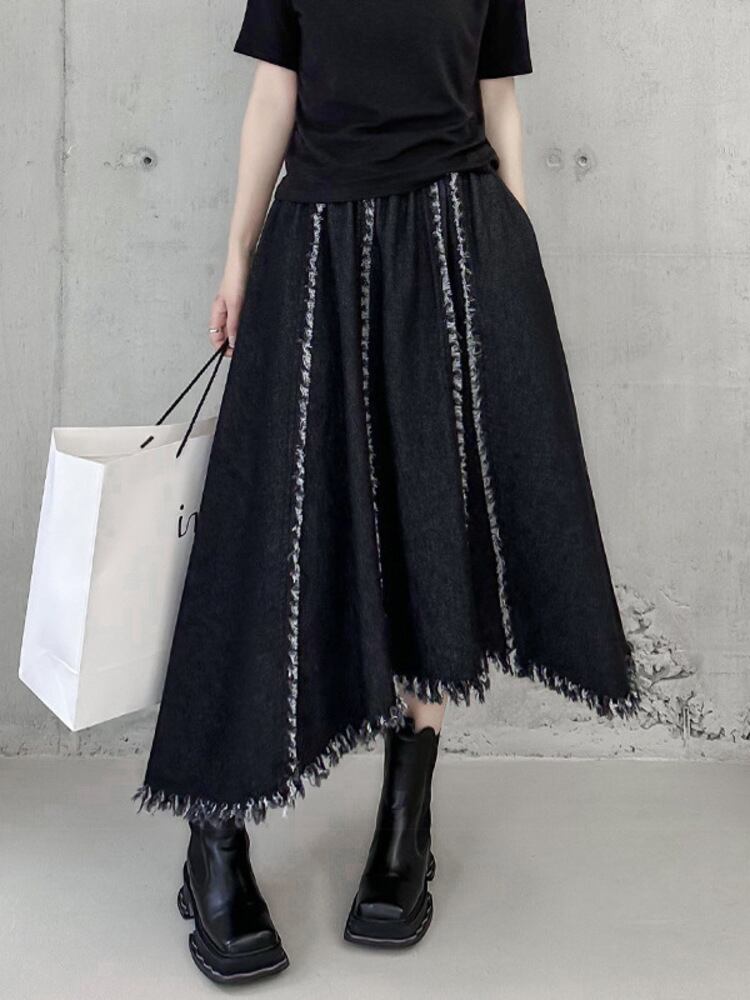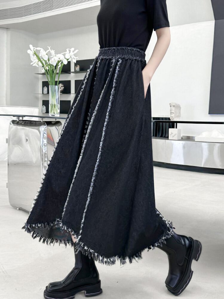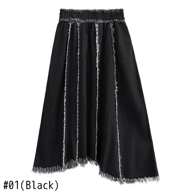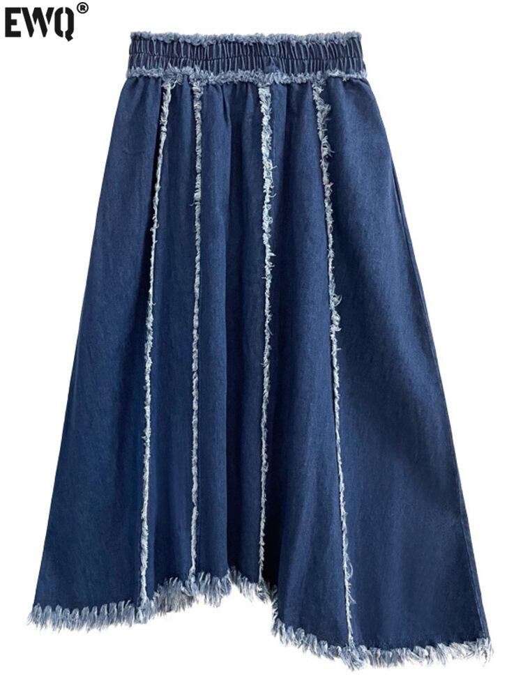 [EWQ]レディース ウエスト コントラスト テル デニム スカート イレギュラー パッチワーク ミッドカーフ スカート 春 秋 ファルダス スプリング 春物 オータム 秋物