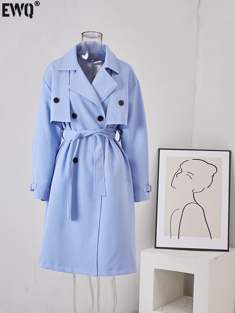 【EWQ】スウィート ルース オータム トレンチコート レディース ロング丈 ウインドブレーカー 大人ガーリー キュート カジュアル 秋物