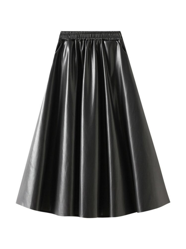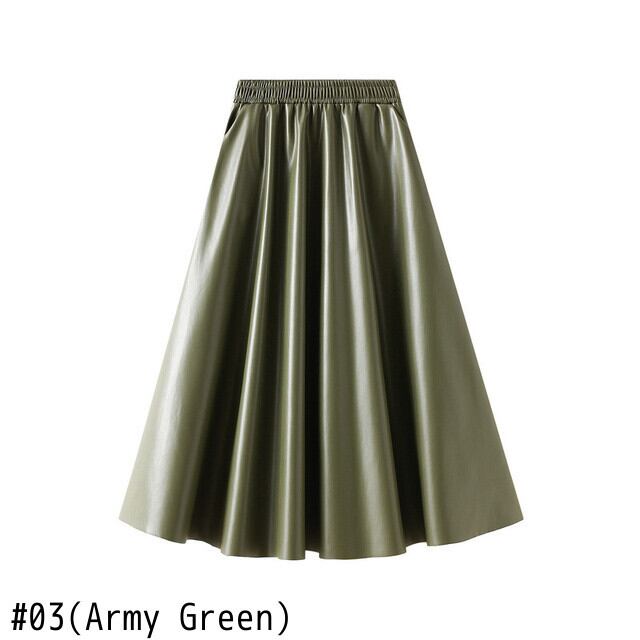 [EWQ] 無地プリーツ PU スカート ポケット スプライシング レザー スカート春夏ファルダス 16Y6275 スプリング 春物 サマー 夏物 ソリッドカラー