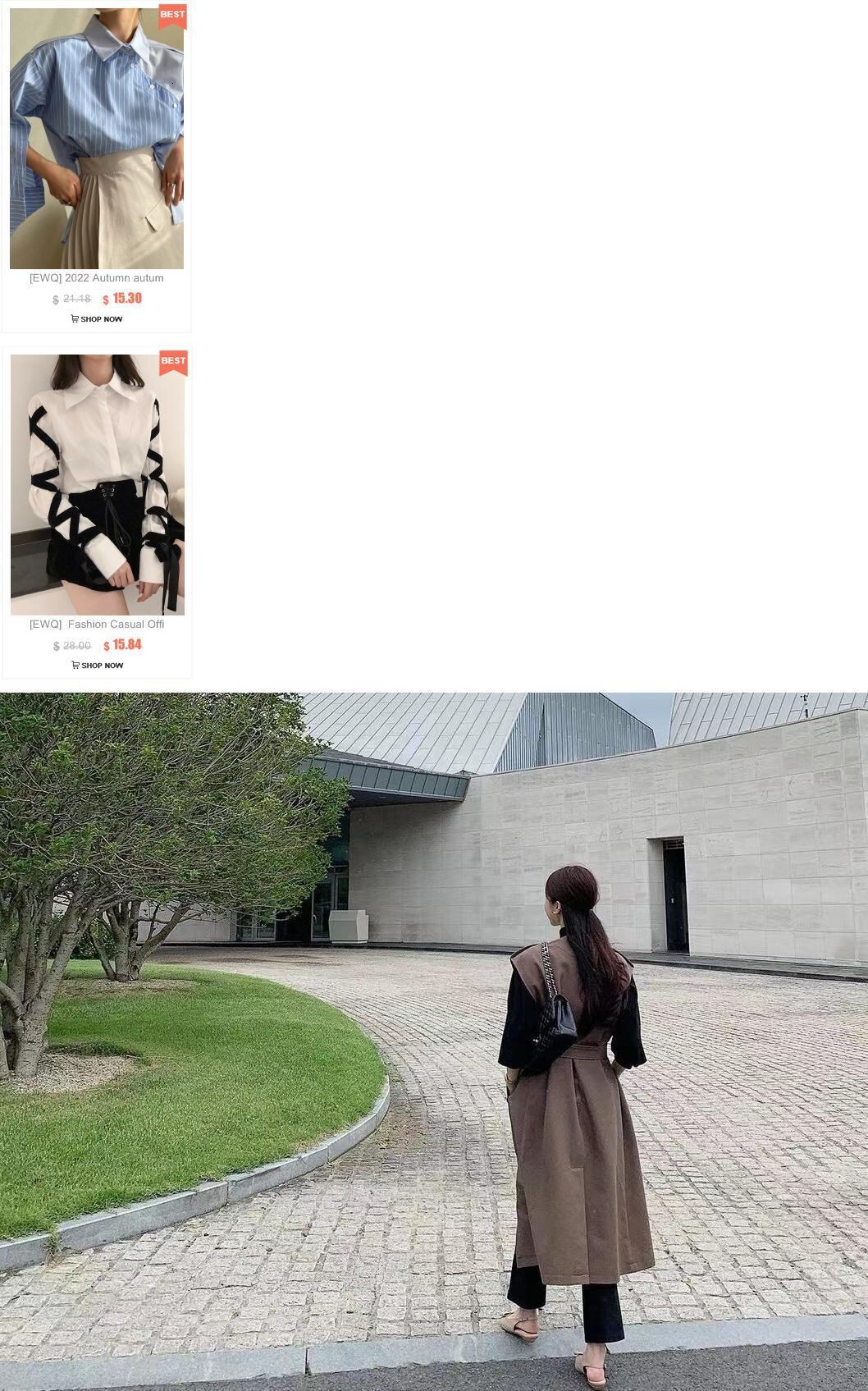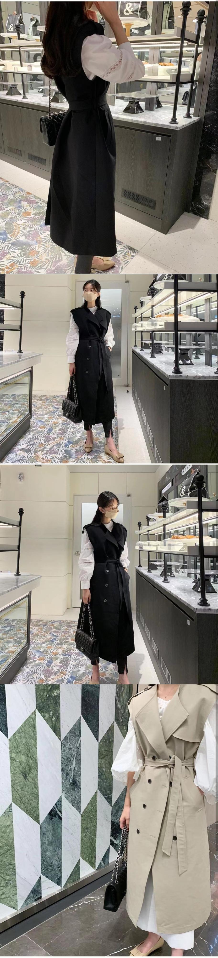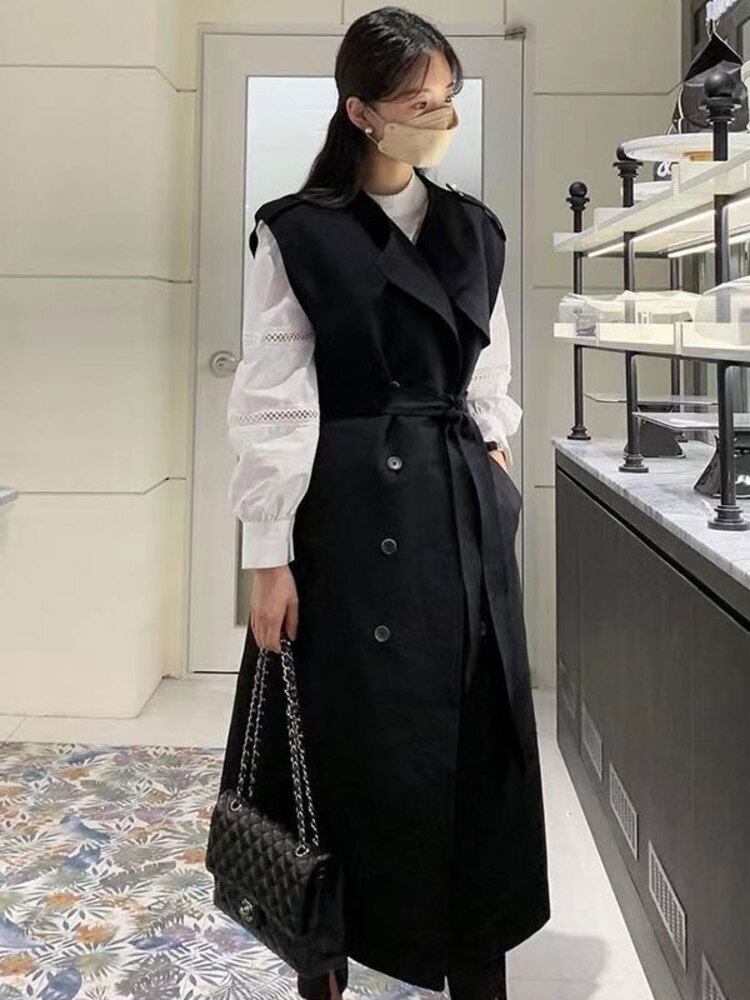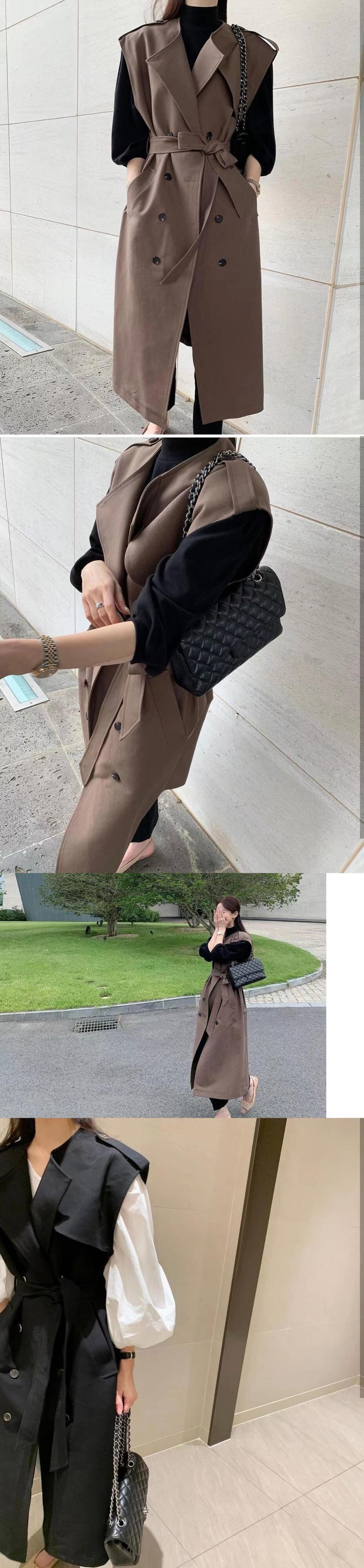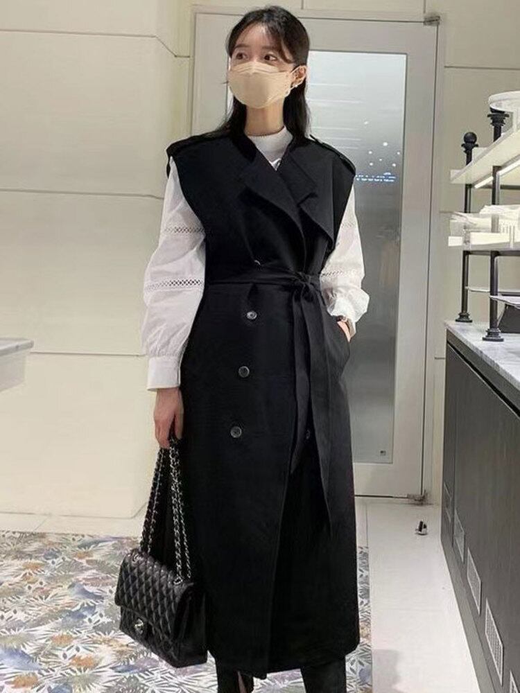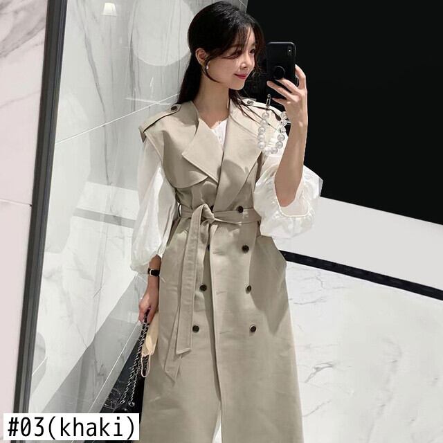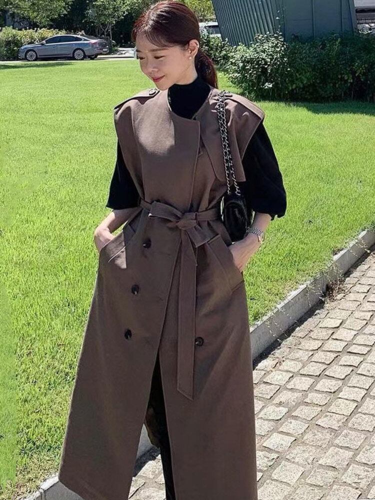 [EWQ] スーツカラーダブルブレストノースリーブウインドブレーカーコート春秋潮ベルトブラウントレンチコート Y581 スプリング 春物 オータム 秋物 ハーネス