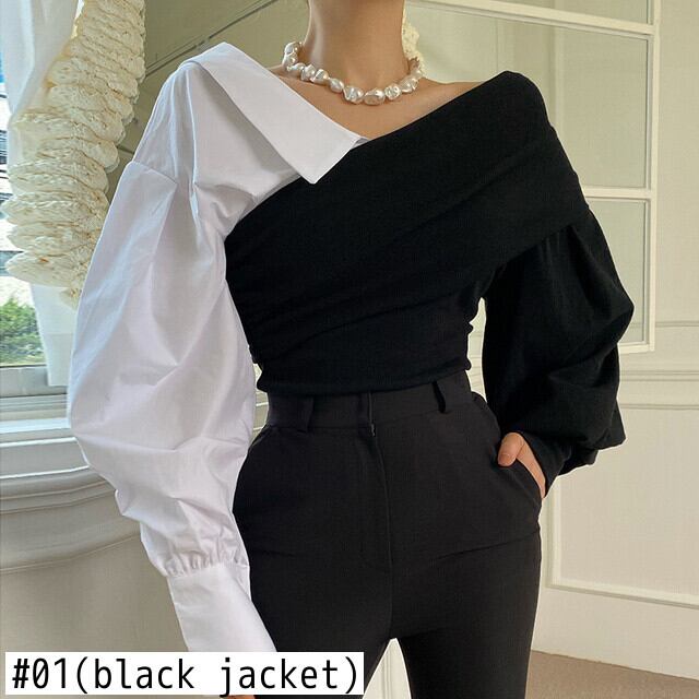 【EWQ】Vネック 長袖 配色 クイーン 春 新作 ルーズトップ シック セーター オフショルダー 服 ロング スプリング 春物