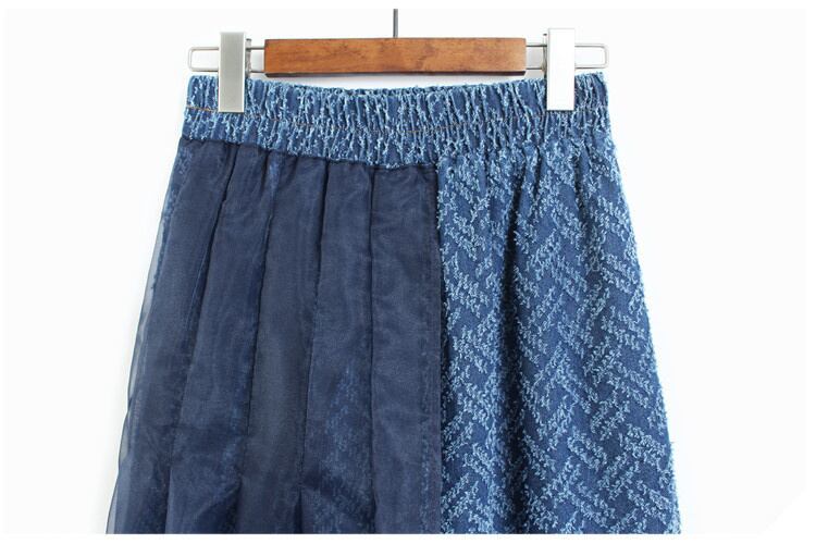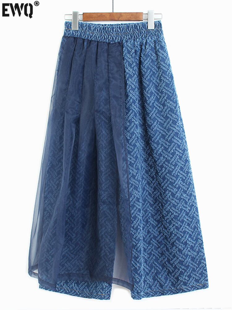 [EWQ] メッシュスプライシングデニムワイドレッグパンツジャカードストレートズボン春夏ストリートズボン 16Y6563 スプリング 春物 サマー 夏物 ワイドパンツ