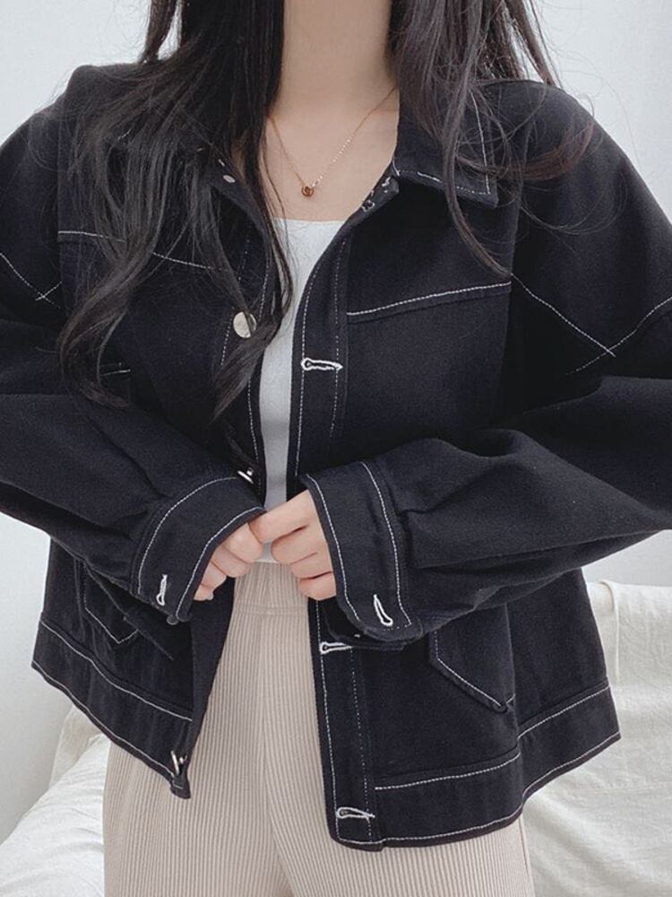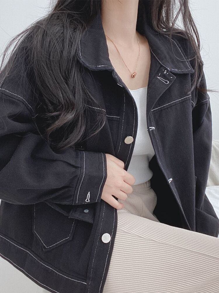 [EWQ] シックラペル多彩シングル ブレスト長袖デニム ジャケット春サファリ スタイル コート Y265 ロング スプリング 春物