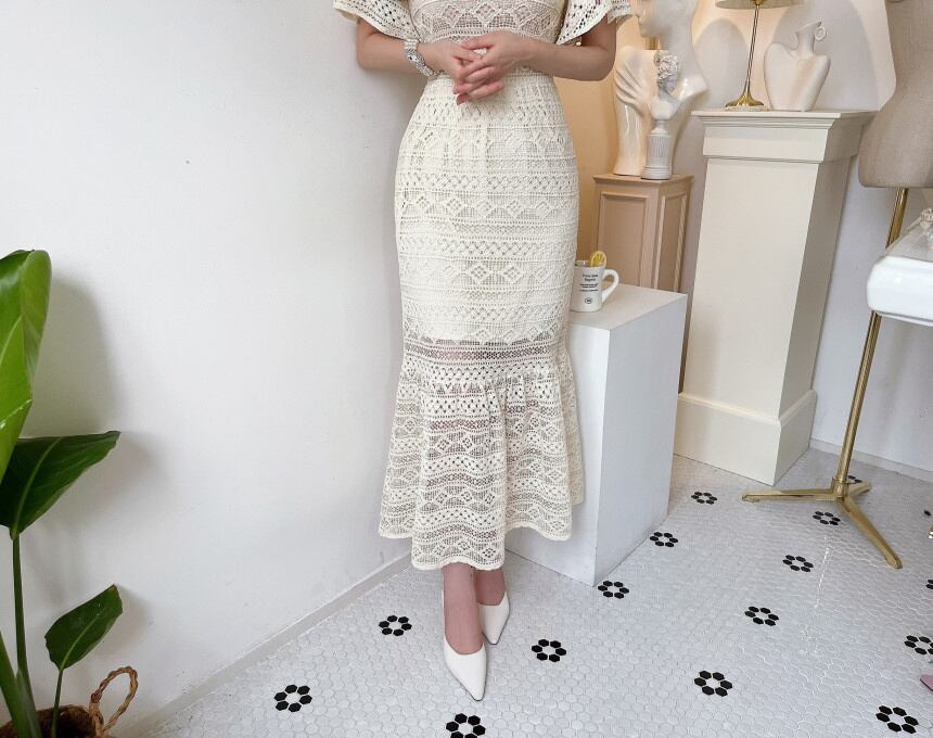 [EWQ] フック花中空ドレス半袖ドレス夏スリム スクエア ネック Vestido ショート ハーフスリーブ サマー 夏物 フラワーデザイン スクウェア
