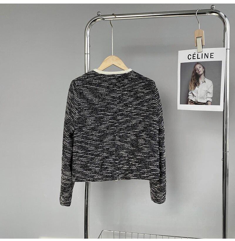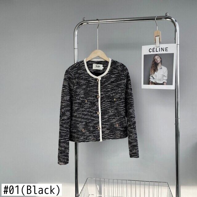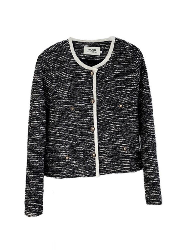 【EWQ】長袖 Oネック アウター レディース コントラスト シングルブレスト ツイード コート キレイめ 春 トップス ロング スプリング 春物