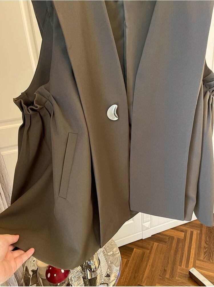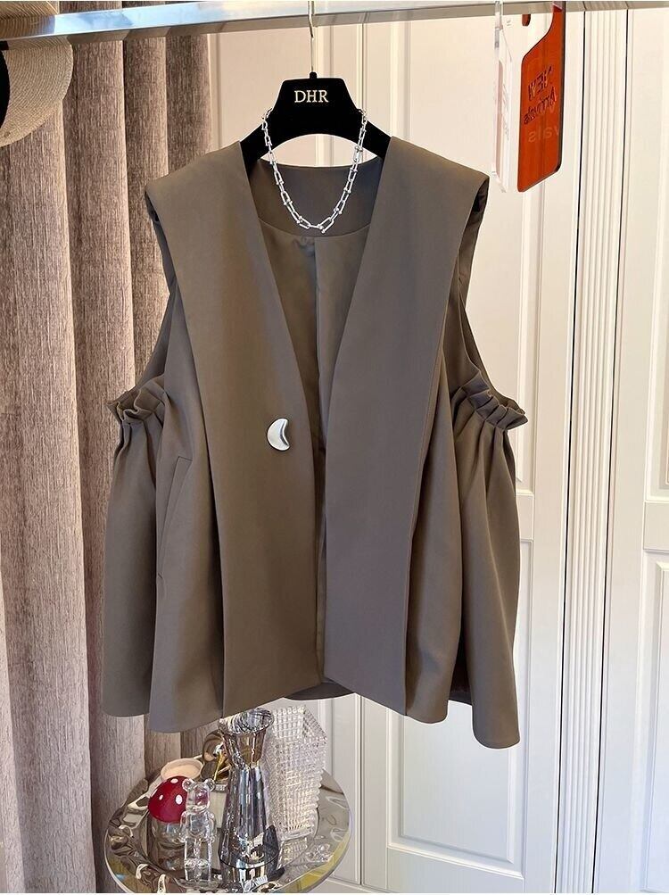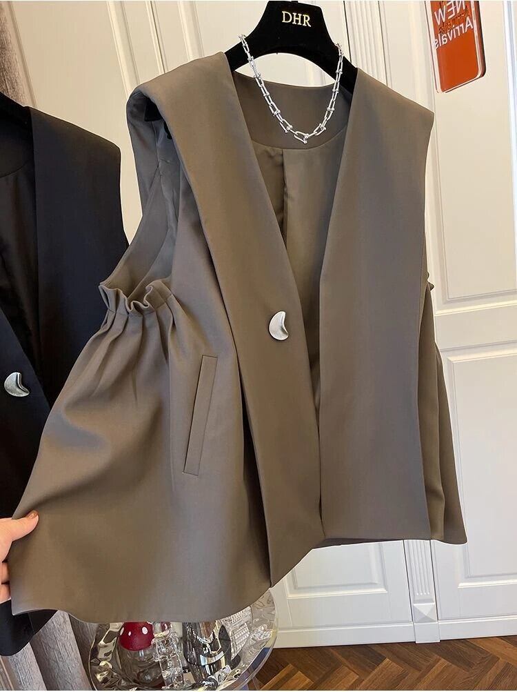 【EWQ】ブラック 春 冬 ゆったり コーヒー ジャケット プリーツ 傘 スーツ ベスト コート レディース トップス スプリング 春物 ウィンター 冬物