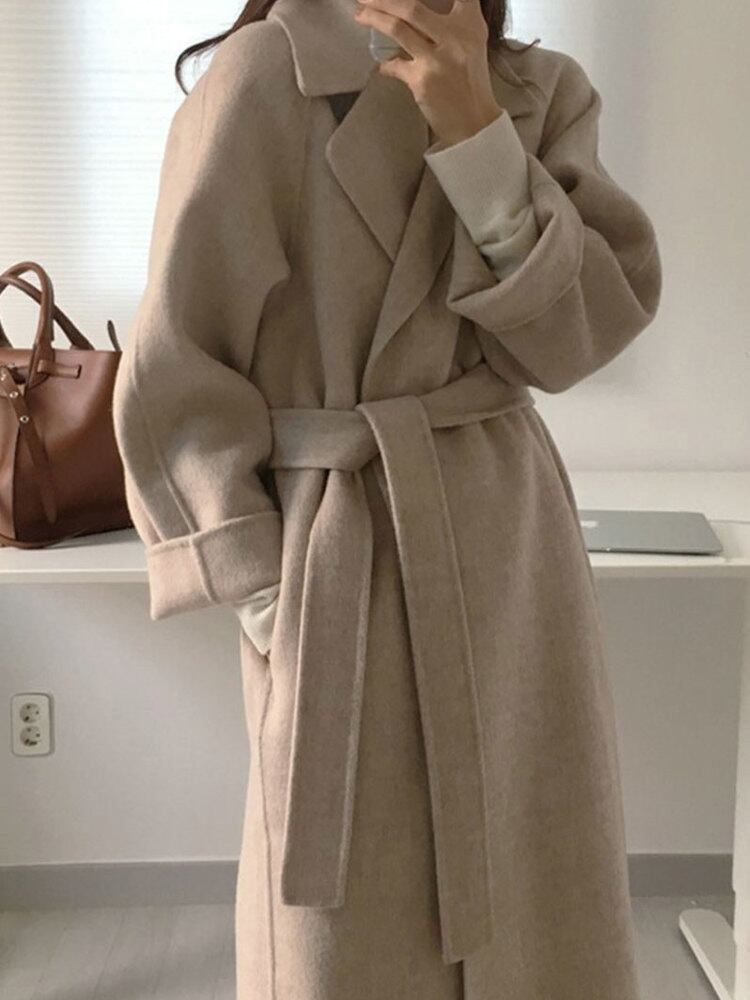 [EWQ] シック アウター グレー 厚手 オーバーコート 春 冬 レディース ゆったり ブレット ロング ブラウン ウール コート オーバーコート スプリング 春物 ウィンター 冬物