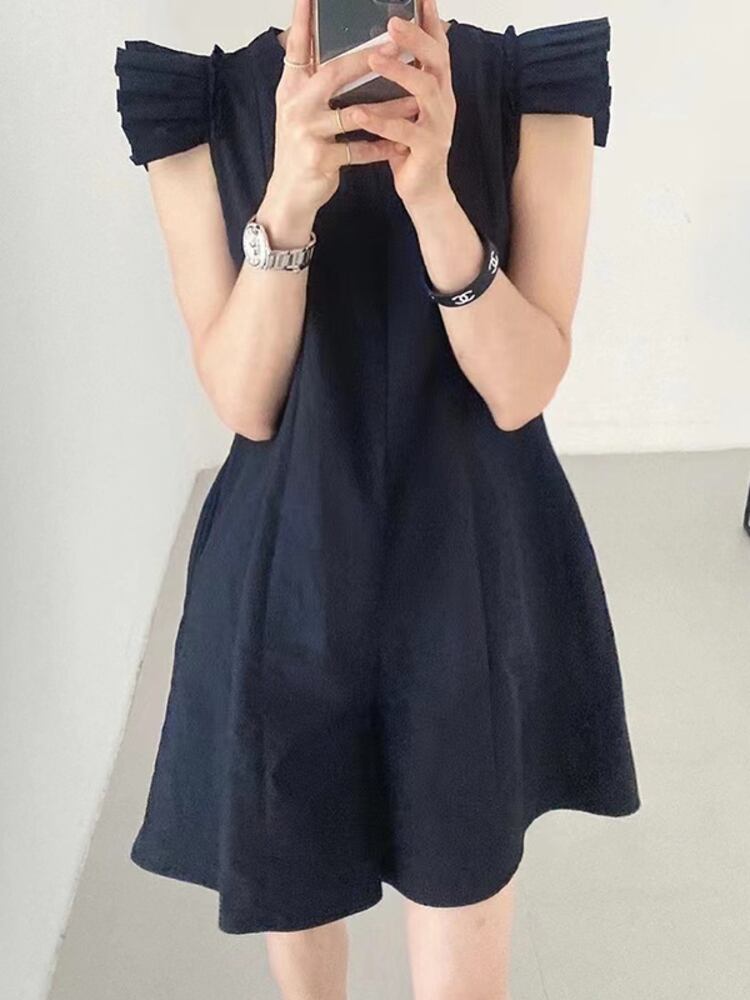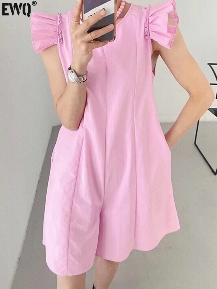 [EWQ] ピンク フリル スプライス ウエスト ショート遊び着夏潮ソリッド ルーズ ワイドレッグ パンツ & プレイスーツ 8126 サマー 夏物 ワイドパンツ ソリッドカラー
