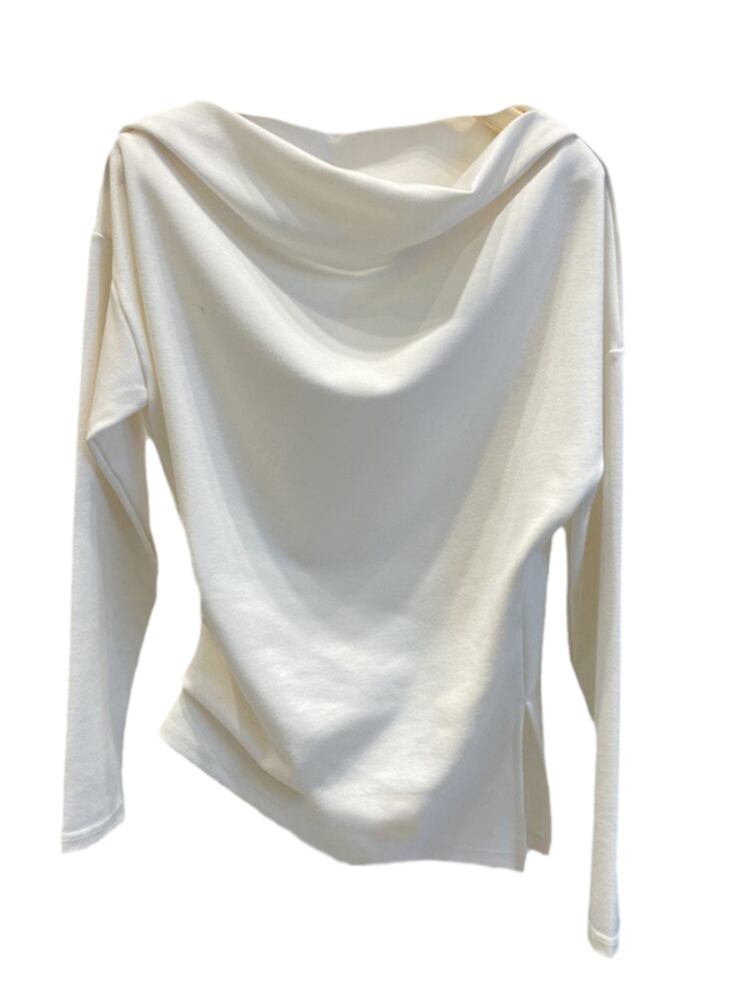 [EWQ] スラッシュネック無地 Tシャツ弾性長袖底入れシャツ Tシャツ春秋サイドスプリットトップ ロング エラスティック 伸縮 スプリング 春物 オータム 秋物 ソリッドカラー