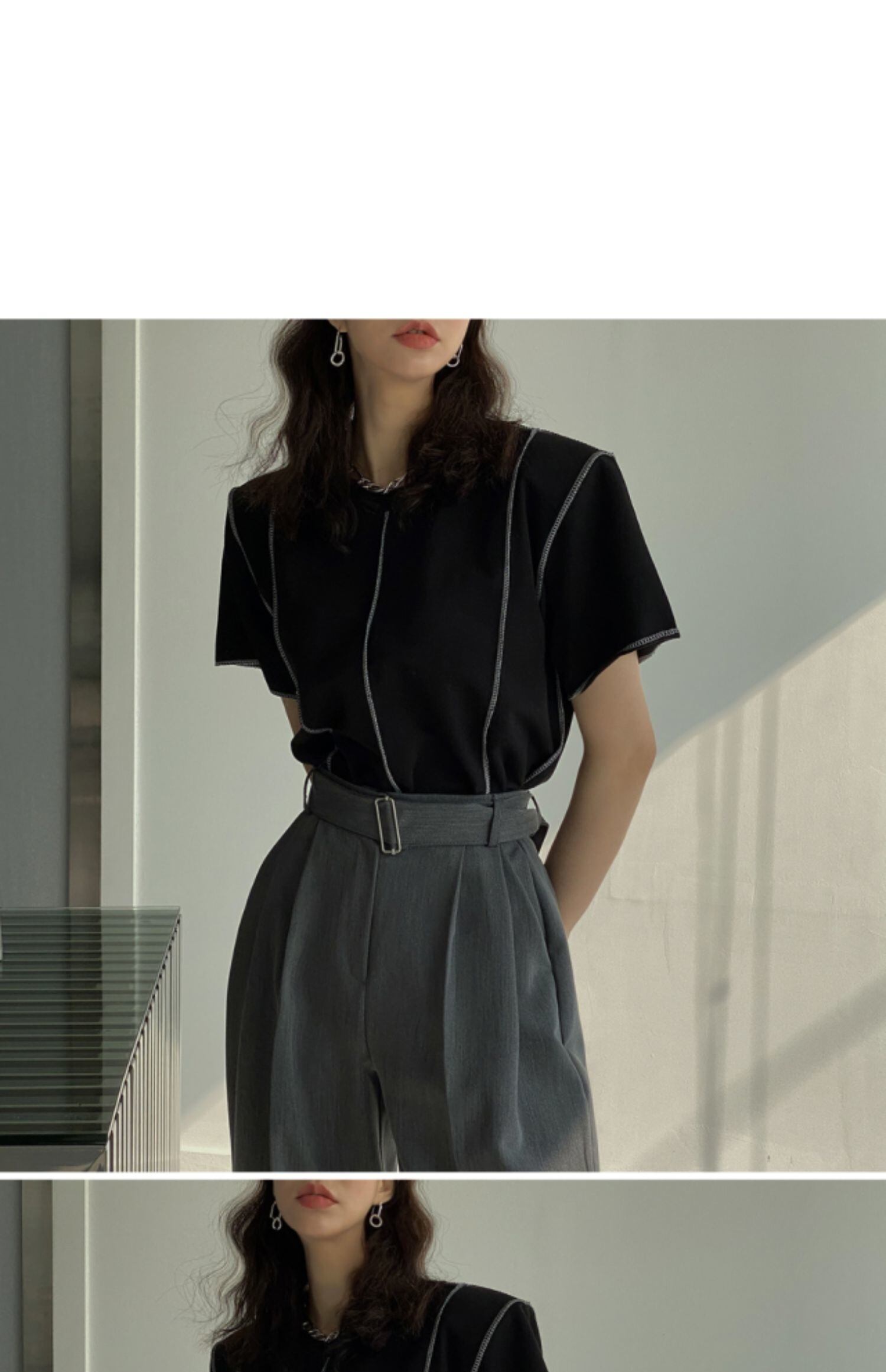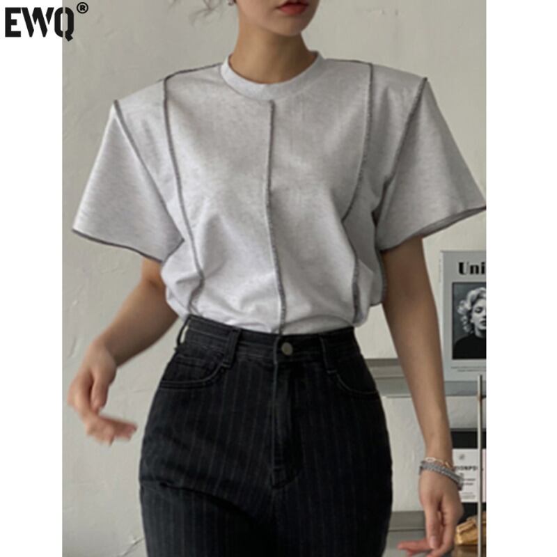 [EWQ] O ネック ライン コントラスト Tシャツ レディース 半袖 ホワイト コットン Tシャツ トップス 春夏 トップス 95 ショート ハーフスリーブ スプリング 春物 サマー 夏物 Oネック