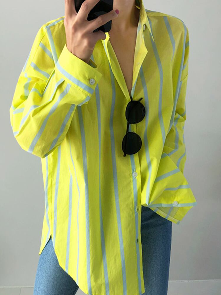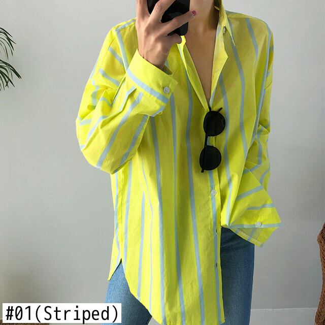 【EWQ】 レディース 秋冬 ストライプ 長袖 ビッグサイズ シャツ 薄底 気質 フィット タイド 16Y7070 ロング オータム 秋物 ウィンター 冬物