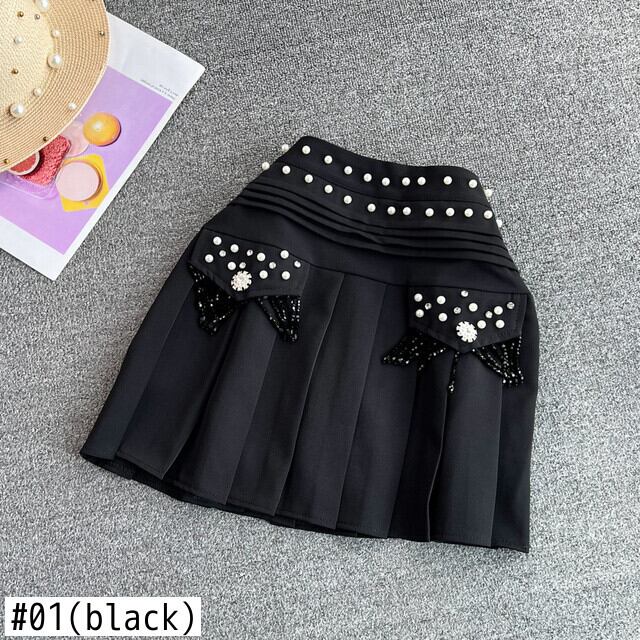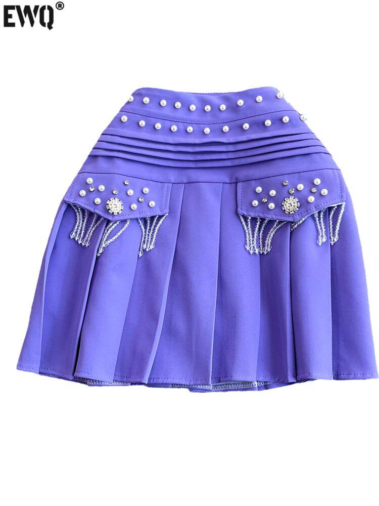 [EWQ] ビーズ tel ウエスト a ライン ミニ スカート紫プリーツ ショート スカート夏潮オールマッチ服 41 サマー 夏物 Aライン パープル
