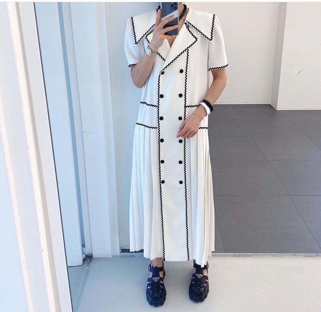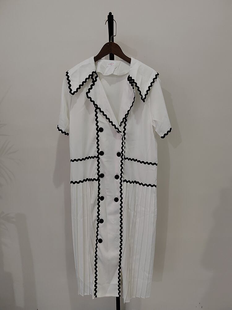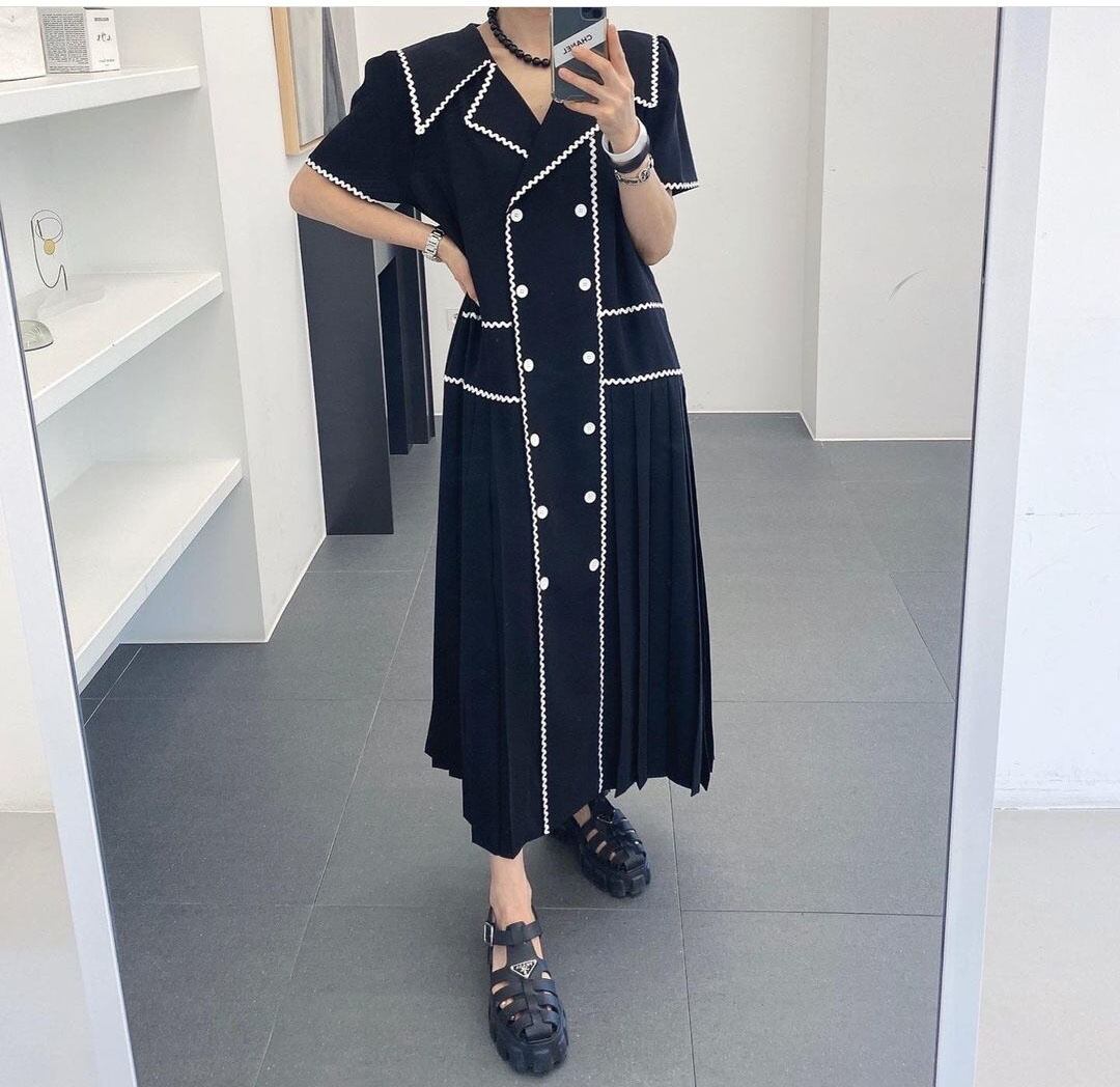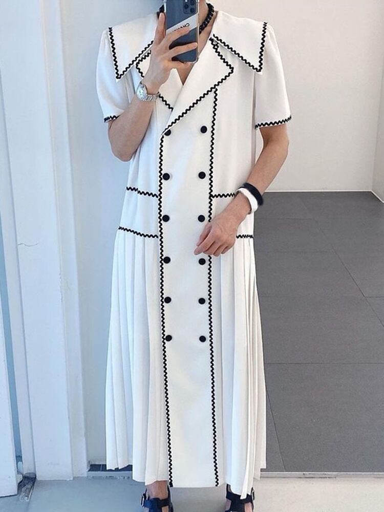 【EWQ】シックサマーショートスリーブレディースVestidosストレートホワイトロングドレスダブルブレストプリーツY171 半袖 ハーフスリーブ 夏物