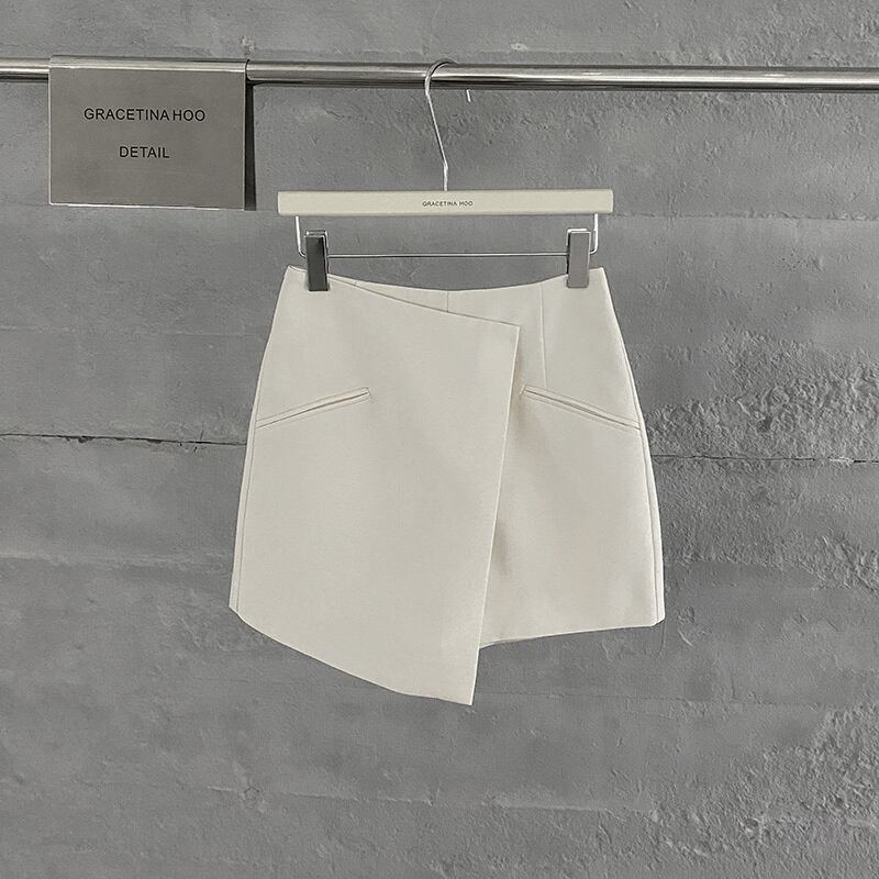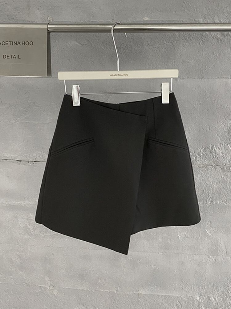 【EWQ】レディース イレギュラーウエスト Aラインスカート 無地 ポケットミニスカート 春夏トレンド パープルファルダス 16Y6542 スプリング 春物 サマー 夏物 ソリッドカラー
