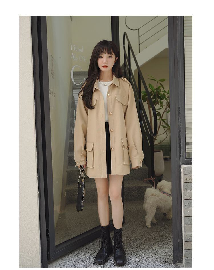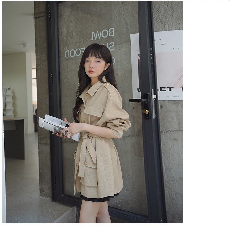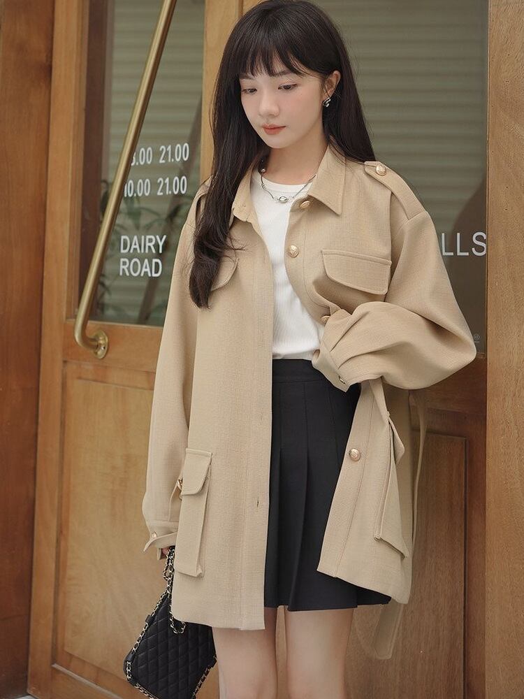 【EWQ】シングルブレスト 無地 レディース ウインドブレーカー ダブルポケット ベルト トレンド コート アウター 春 秋 トップス 6Y6993 スプリング 春物 オータム 秋物 ハーネス ソリッドカラー