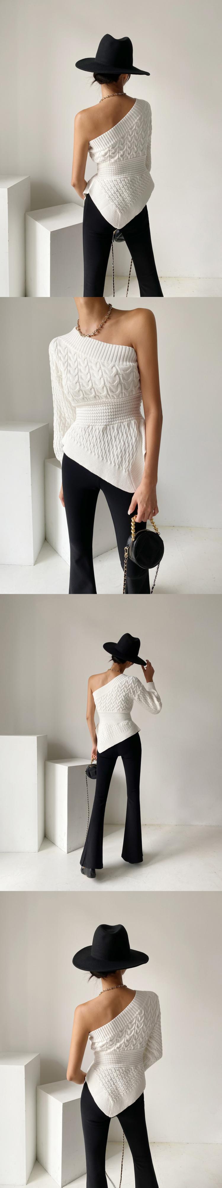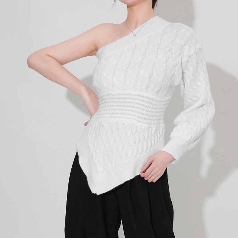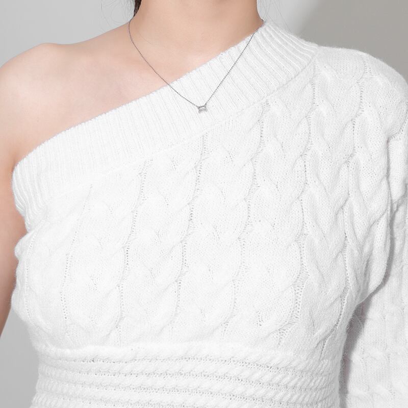 【EWQ】シックホワイト レディース 秋 オフショルダー ニットセーター 斜め衿 五分袖 16E3198 半袖 ハーフスリーブ オータム 秋物