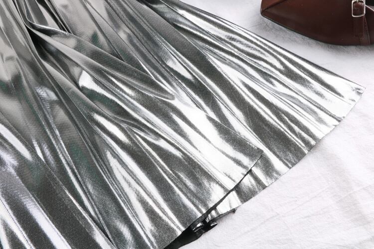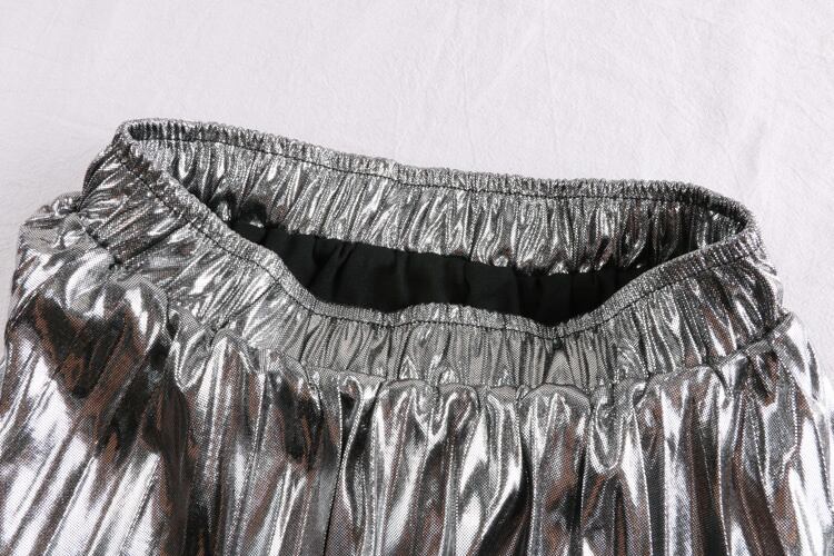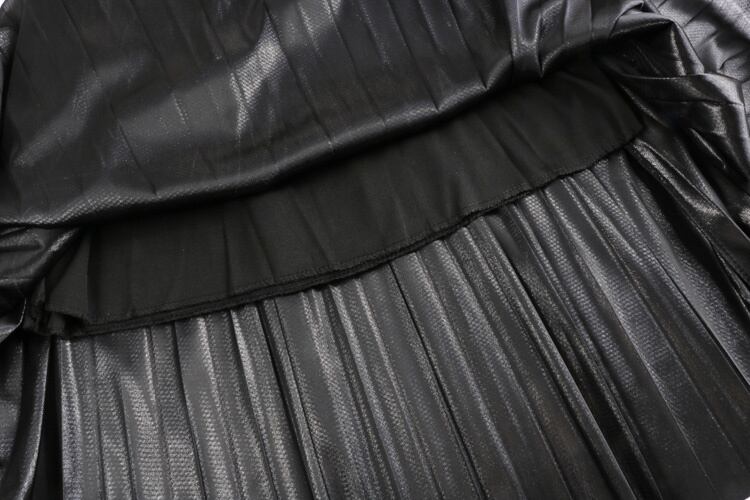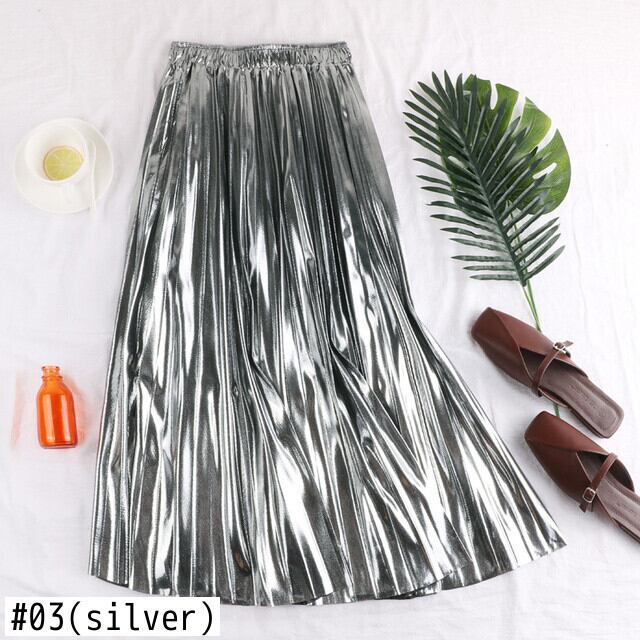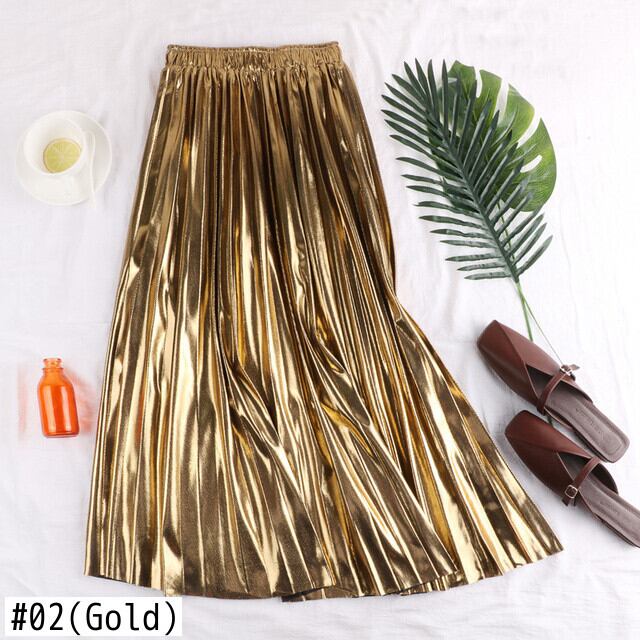 [EWQ] ウエストゴム プリーツ ミニスカート レディース Aライン PUレザー ミッドクラフ ゴールドスカート 春 16Y5792 エラスティック 伸縮 スプリング 春物