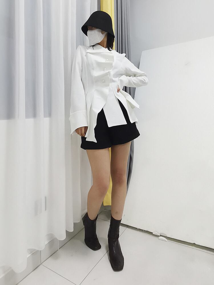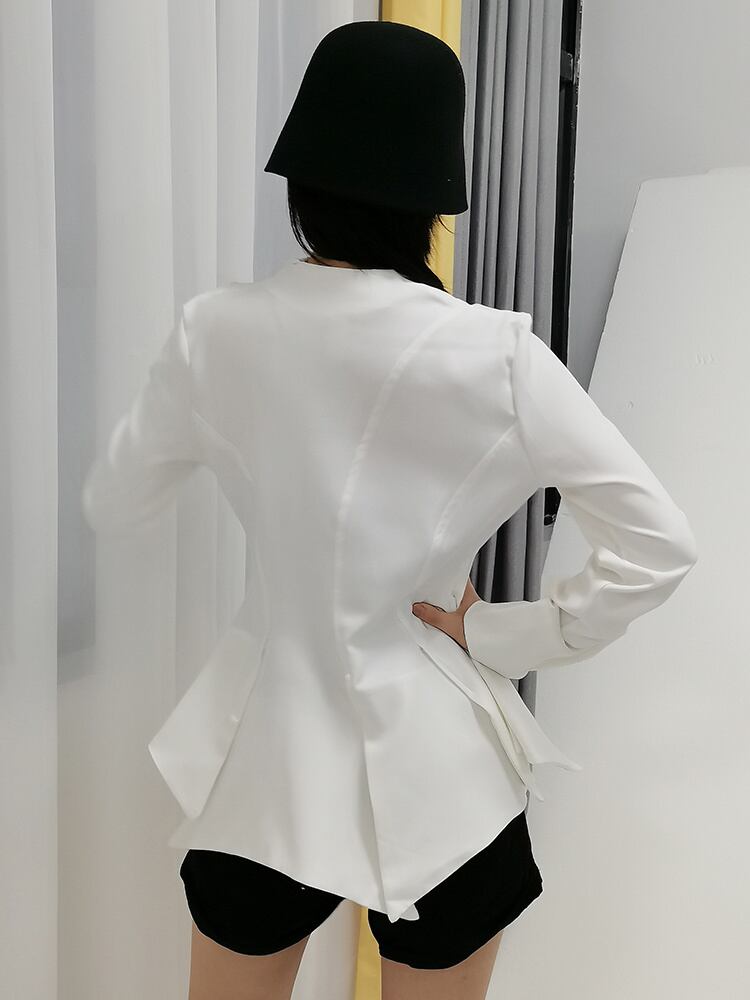 [EWQ] シャツ レディース ラペル 長袖 スキニー ブラウス サマースタイル スリム ホワイト ロング 夏物