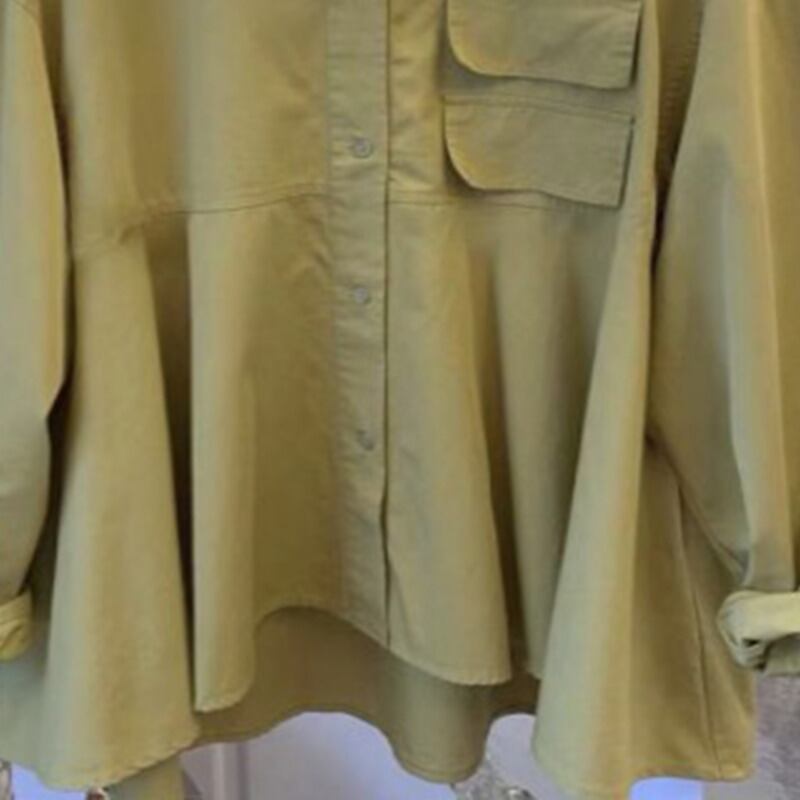 [EWQ] レディース グリーン シングルブレスト シャツ 春 秋 パッチワーク フリル コットン 長袖 トップス 74 ロング スプリング 春物 オータム 秋物