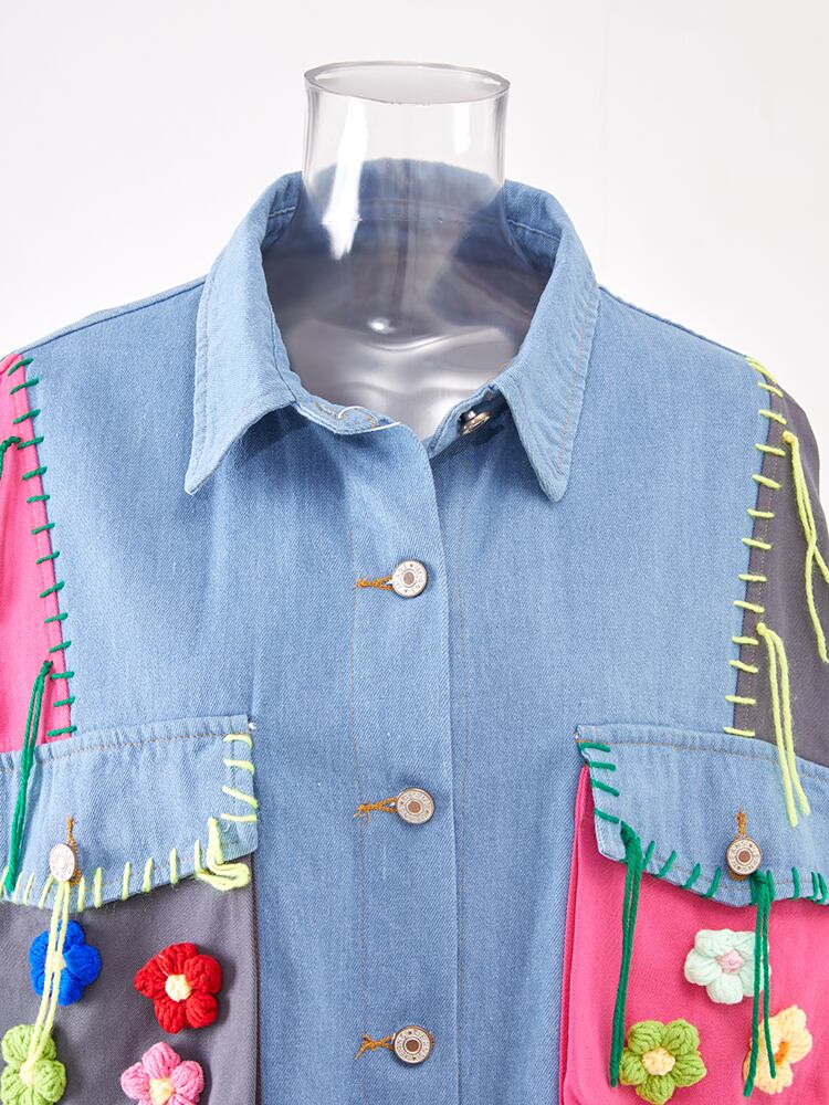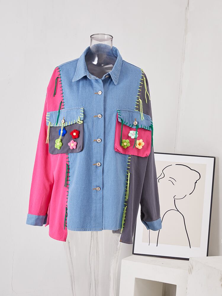 [EWQ] パッチワーク 長袖 ビッグサイズ オーバーコート つぎ合わせ コントラストカラー 春 秋 レディース 薄手 デニム コート ロング スプリング 春物 オータム 秋物