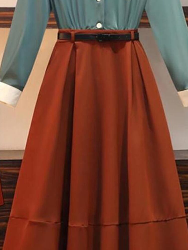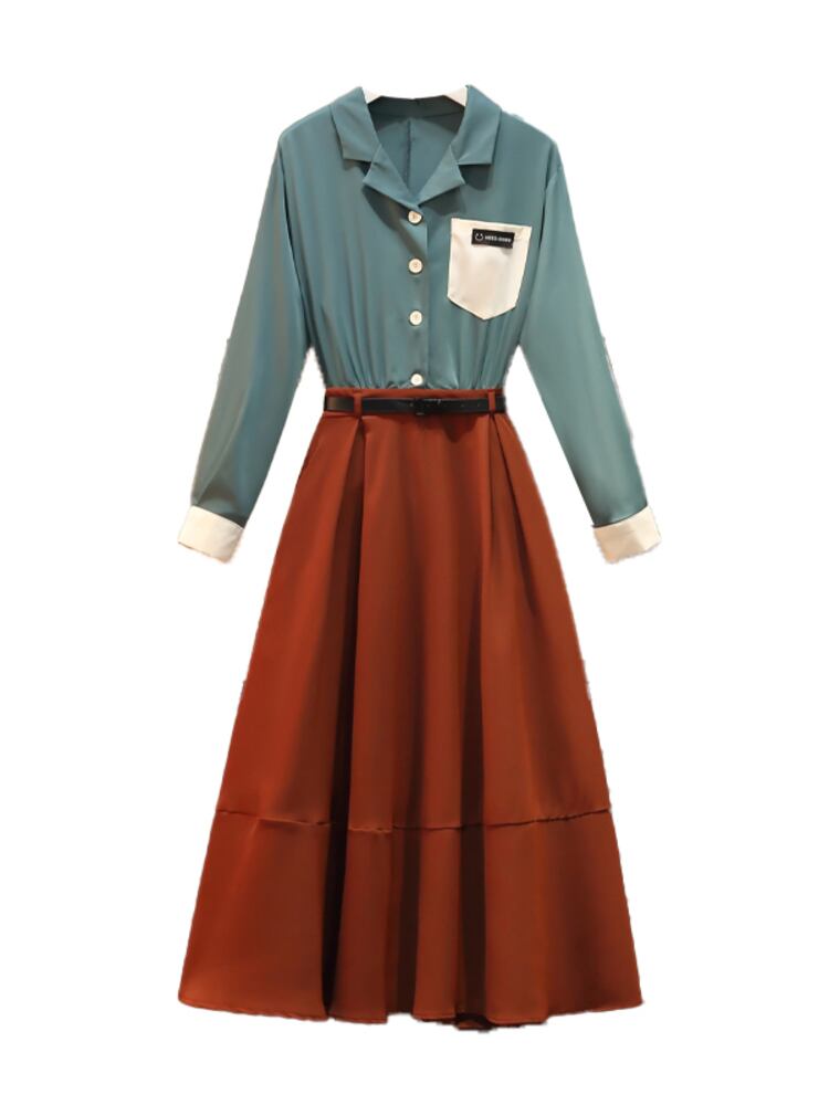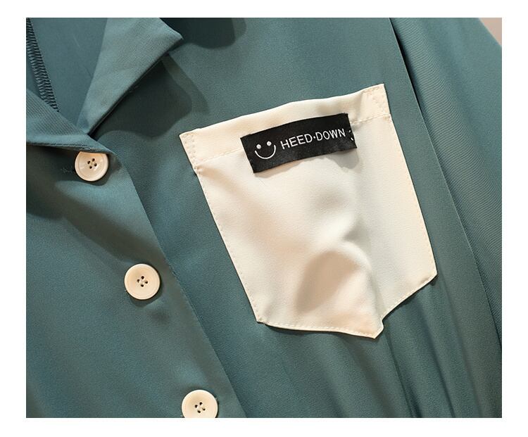 [EWQ] ポケット シャツ スプライシング 2 つフェイク ピース A ライン ドレス春秋潮ターン ダウン襟 Vestido 16Y6 スプリング 春物 オータム 秋物 Aライン