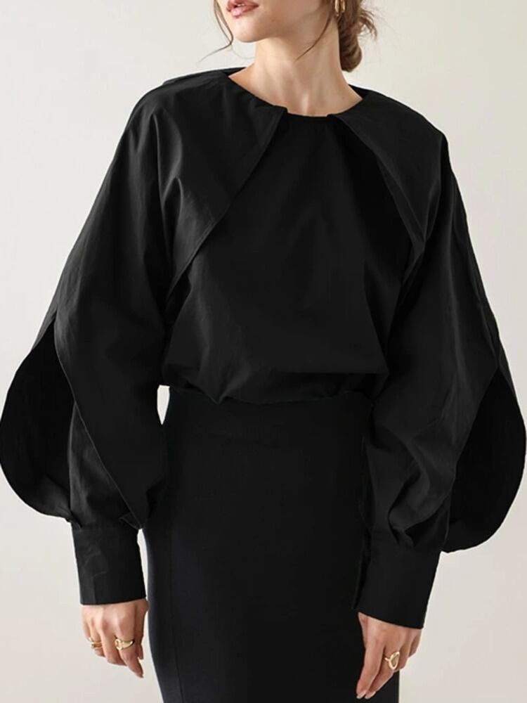 [EWQ] 無地長袖シャツ O ネックルーズトップ春秋シャツトップス 16Y6926 ロング スプリング 春物 オータム 秋物 Oネック ソリッドカラー