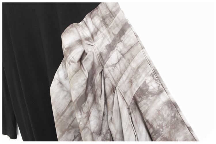 [EWQ] O ネック長袖ドレスカラー コントラスト プリーツ デイリー レジャー ドレス春夏マキシ Vestido 6Y6562 ロング スプリング 春物 サマー 夏物 Oネック