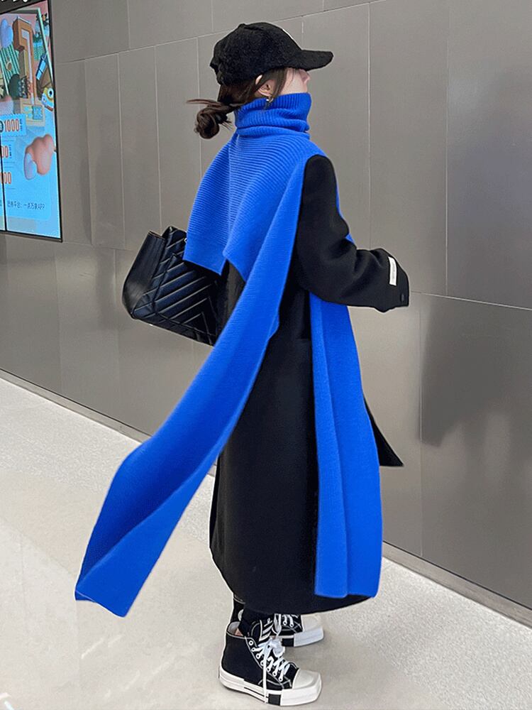 【EWQ】レディース ニットケープ イレギュラー ブルー ロング プルオーバー ショール マフラー スプリング 16Y3604 春物