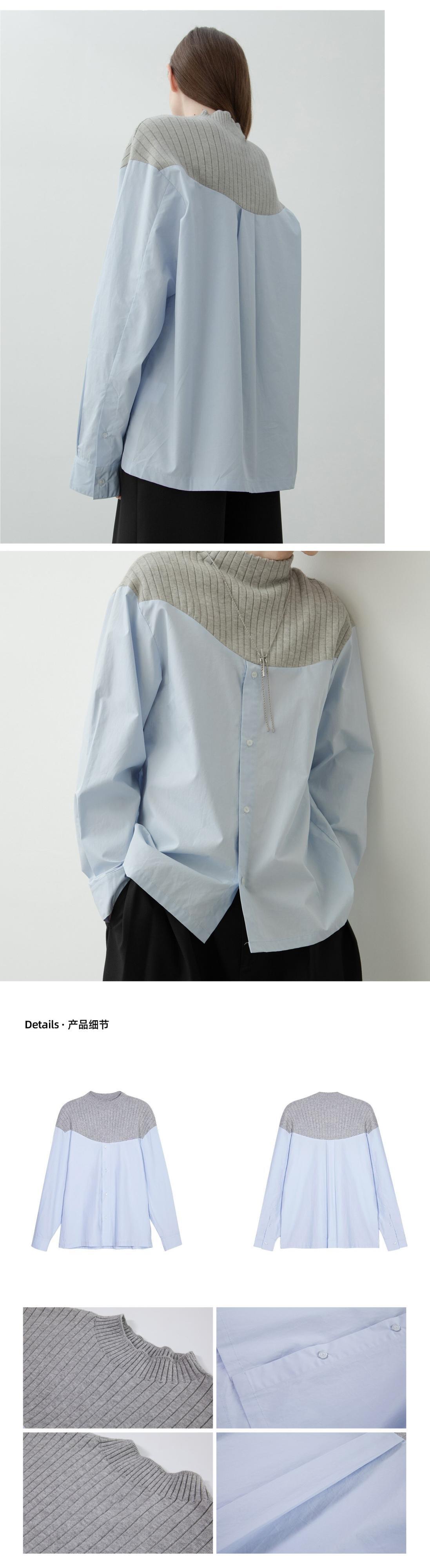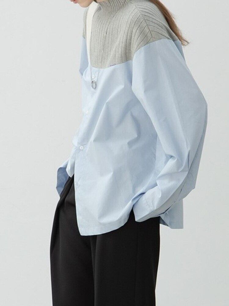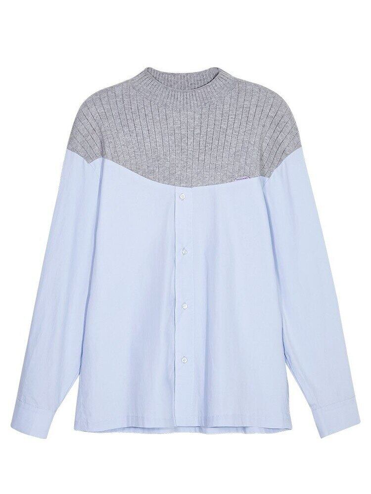[EWQ] スウィート レディース 長袖 ニット スプライス シャツ セーター パッチワーク ブラウス 春 秋 潮 キレイめ トップス 16Y5871 ロング 大人ガーリー キュート カジュアル スプリング 春物 オータム 秋物