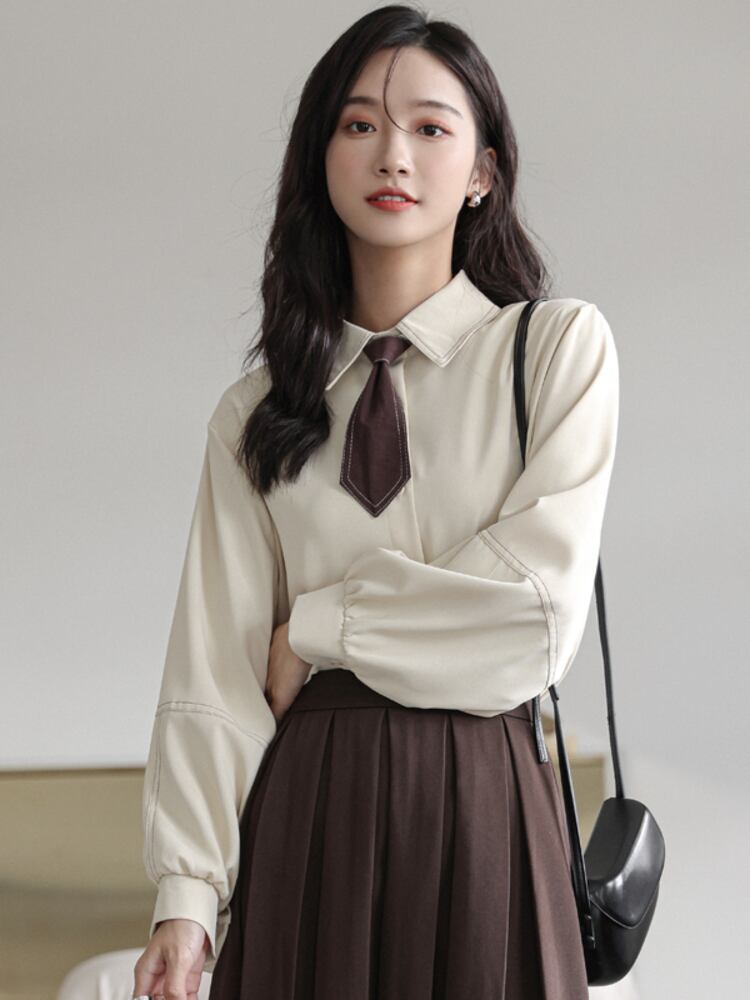 【EWQ】シックボウタイブラウスレディース春秋トレンドシングルブレスト長袖シャツトップス16Y607 ロング リボン スプリング 春物 オータム 秋物