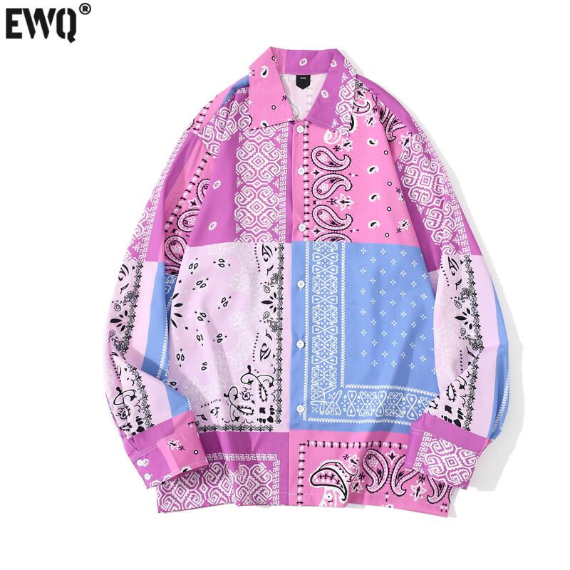 【EWQ】春 パッチワーク バンダナ シャツ プリント ストリート シャツ 長袖 ブラウス 1 トップス トレンドシャツ ロング スプリング 春物