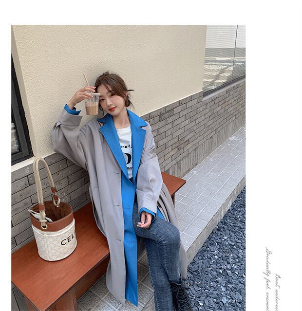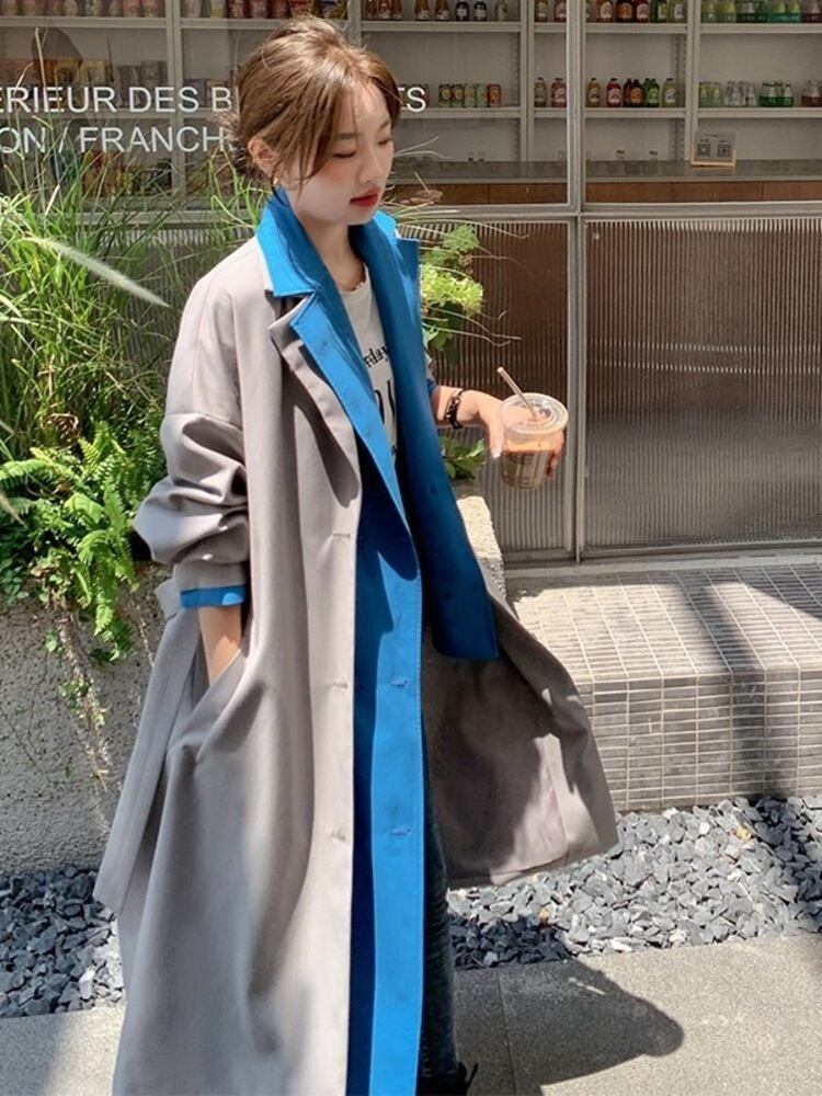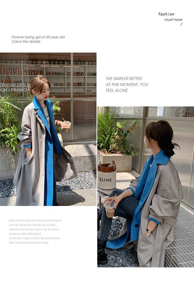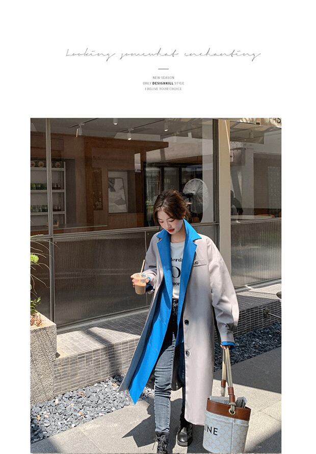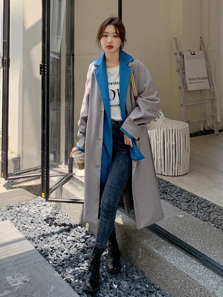 【EWQ】ロングスリーブ トレンチコート アウター フェイクツーピース トレンド レディース ウインドブレーカー 春 16Y2958 長袖 スプリング 春物