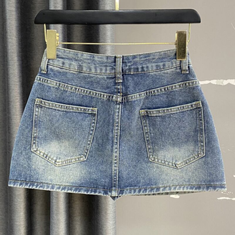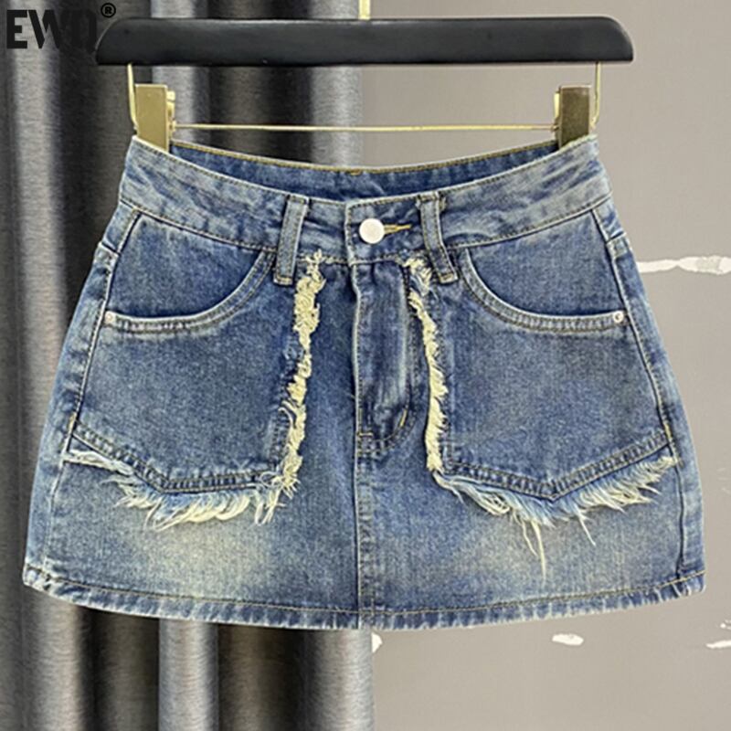 【EWQ】ウエストデニム ミニスカート レディース テルポケット Aラインスカート 夏物 総柄 481 サマー