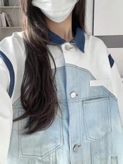[EWQ] コントラストカラーデニムジャケットパッチワーク長袖ジャケットトップ春秋コート 16Y6568 ロング スプリング 春物 オータム 秋物