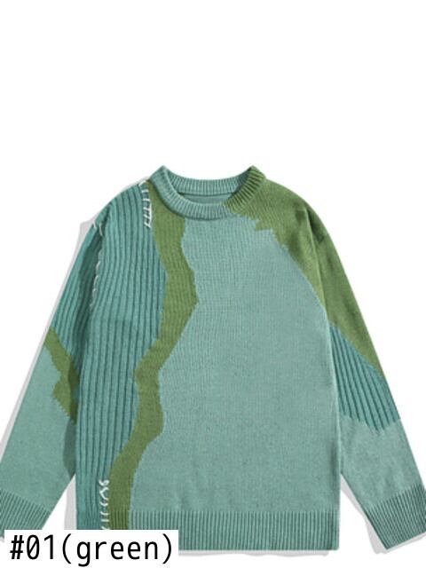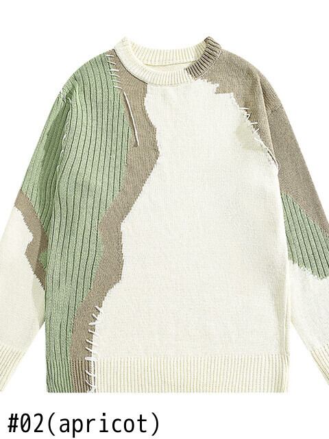 [EWQ] レディース コントラストカラー セーター Oネック プルオーバー ニット 春 秋 ライン スプライシング ニット ソフト トップス 16Y6412 スプリング 春物 オータム 秋物