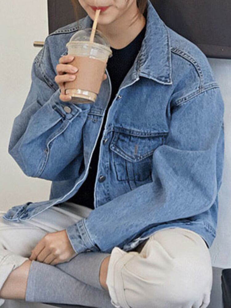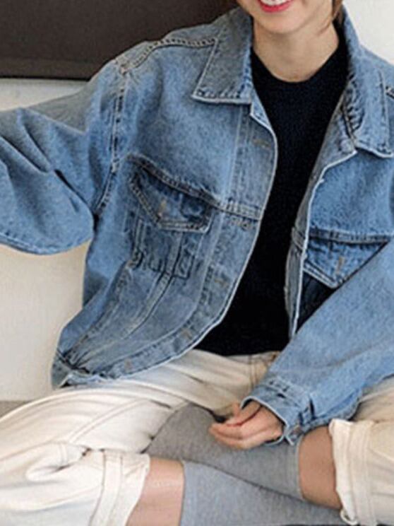 [EWQ] ポケットスプライシング無地デニムジャケットシングルブレストシックジャケットコート春秋コートトップ スプリング 春物 オータム 秋物 ソリッドカラー