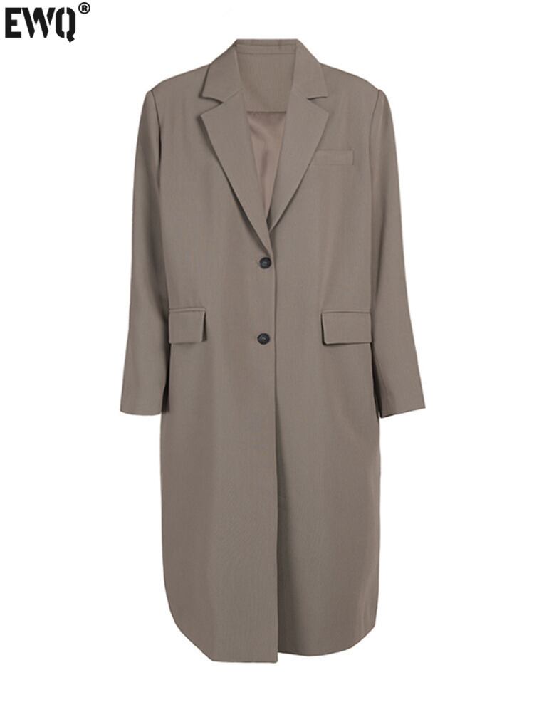 【EWQ】レディース 防風 ターンダウンカラー シングルブレスト 長袖 スプリット トレンチコート 夏 ゆったり オーバーコート ロング サマー 夏物