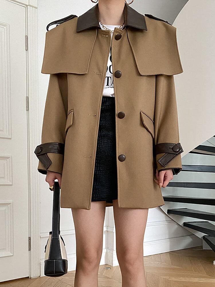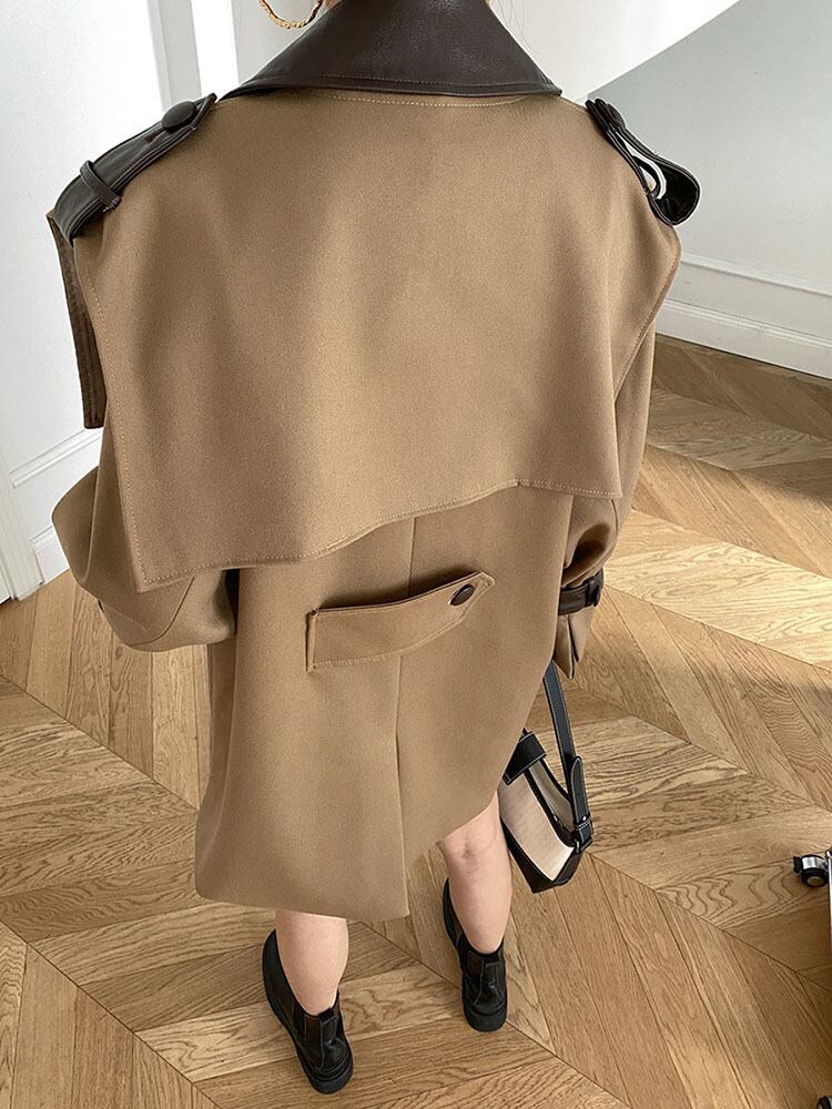 【EWQ】レディース トレンチコート ゆったり シングルブレスト 長袖 パッチワーク ウインドブレーカー 秋 ロング オータム 秋物