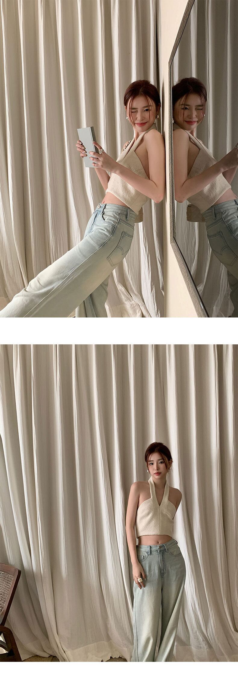 [EWQ] ホルター セクシー ウール ラップ タンク トップ ノースリーブ シングル ブレスト トップス春夏バックレス ベスト 16Y6532 スプリング 春物 サマー 夏物