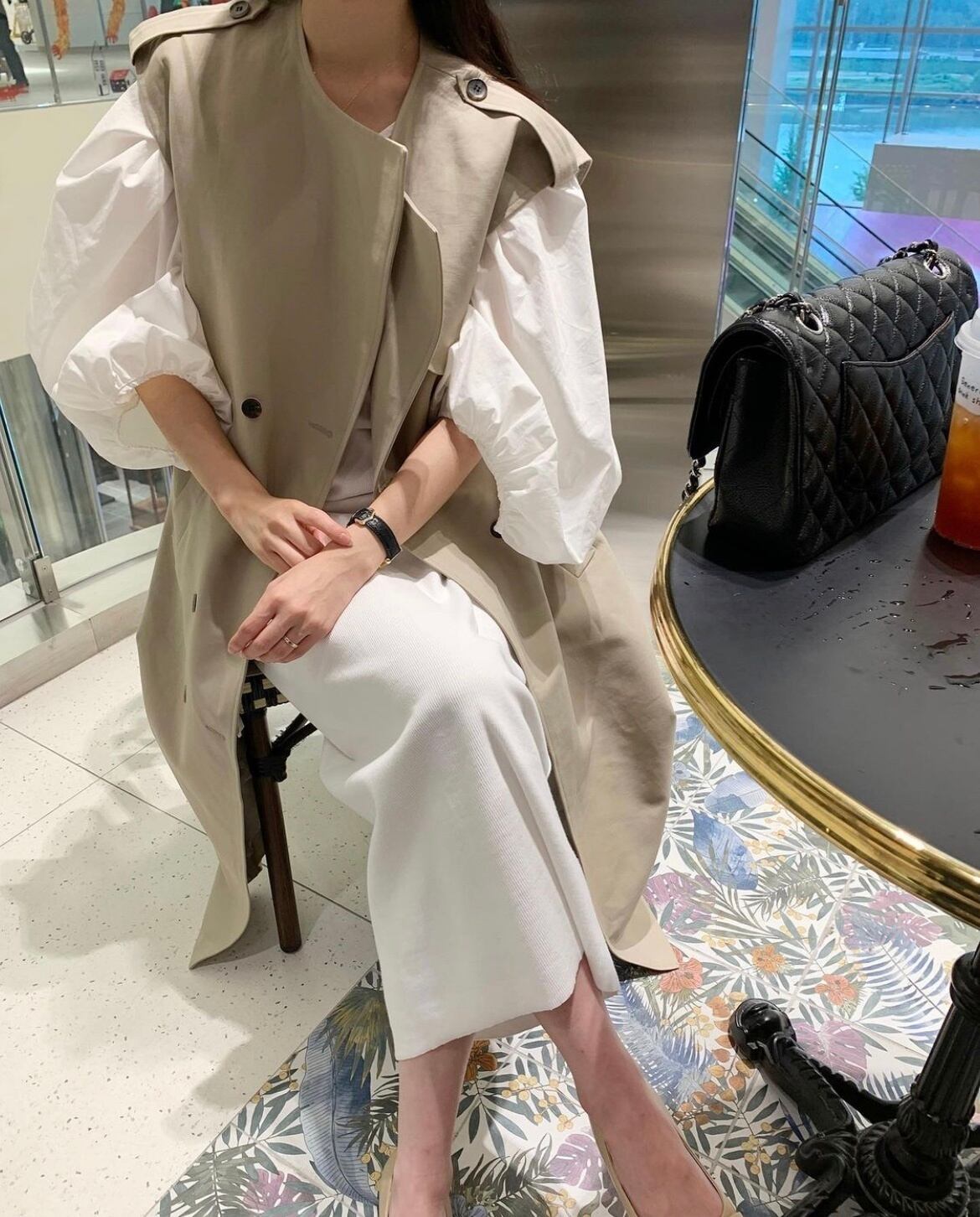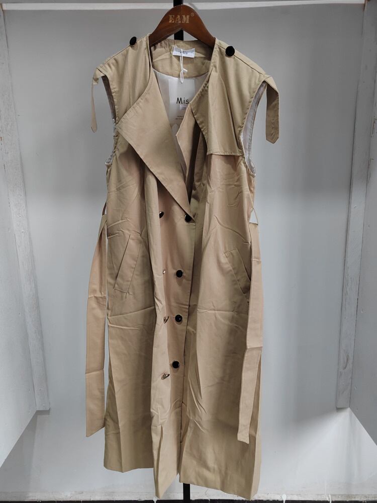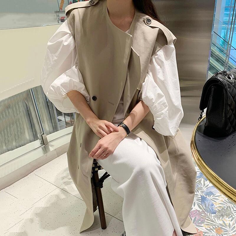 [EWQ] レディース スーツ 春 シック ルーズ コート ラペル レースアップ ノースリーブ ジャケット + シンプルOネック ランタンスリーブ シャツワンピース スプリング 春物
