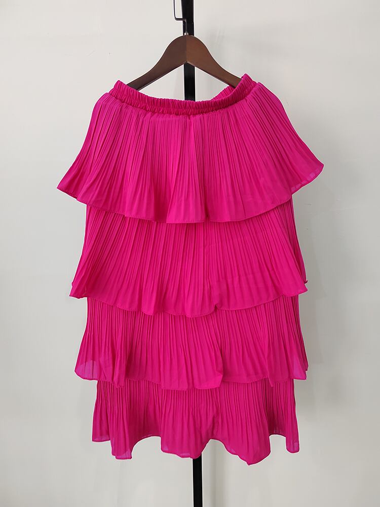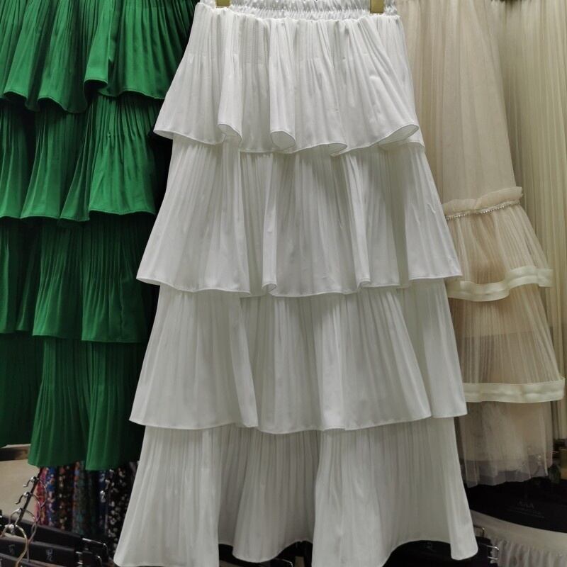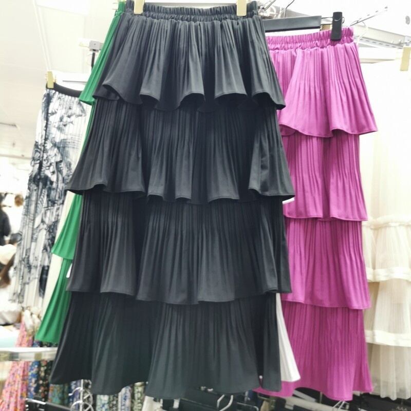 [EWQ] バージョン ウエストゴム スウィート マルチレイヤー シフォン パッチワーク プリーツ ケーキ スカート 夏 16Y799 エラスティック 伸縮 大人ガーリー キュート カジュアル サマー 夏物