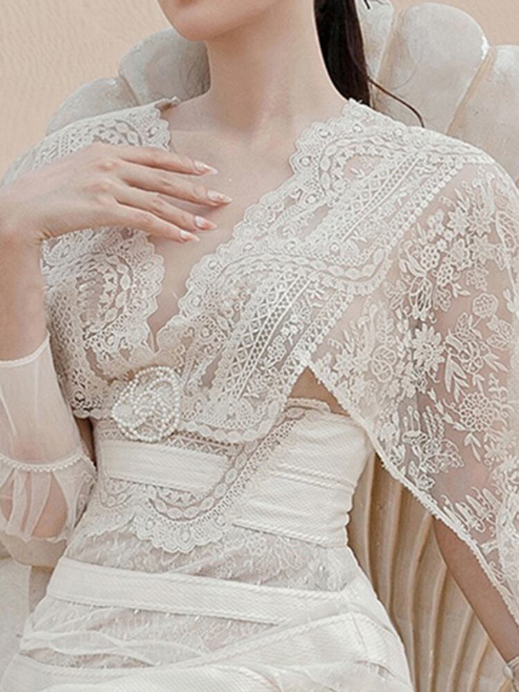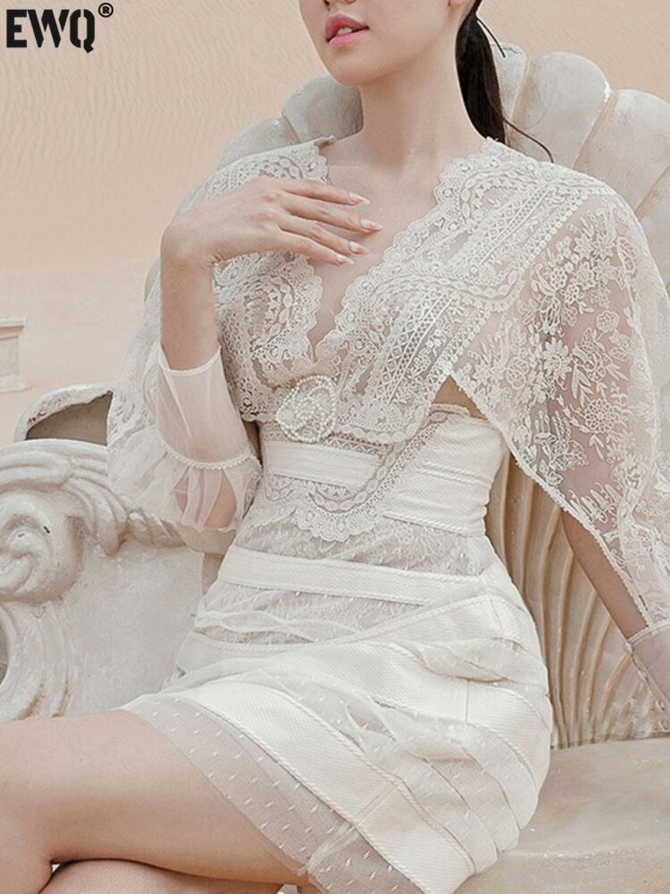 [EWQ] 中空レース刺繍甘いドレスイブニングパーティー A ライン Vestido ドレス春夏高級ミニ Rode 6399 大人ガーリー スウィート キュート カジュアル スプリング 春物 サマー 夏物 Aライン