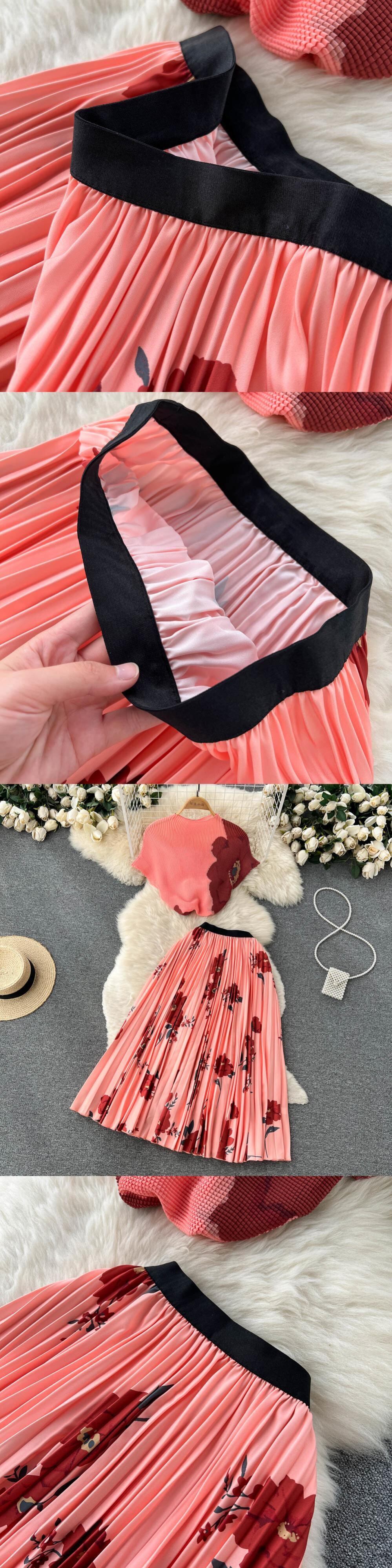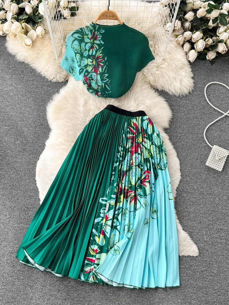 【EWQ】タイダイ ショートTシャツ トップス ウエストプリーツスカート ヨーロッパトレンド パーティー ヨーロピアン