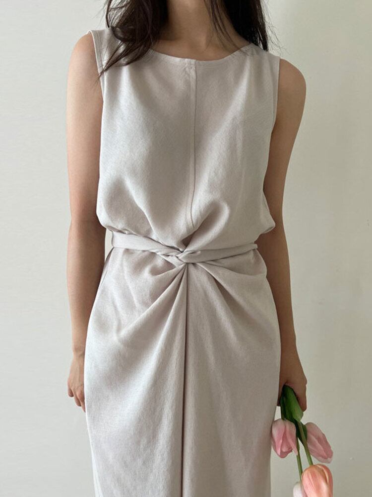 [EWQ] クロスレースアップベストドレス無地気質ジェントルグレース O ネックドレス夏 Vestido 16Y8458 サマー 夏物 Oネック ソリッドカラー