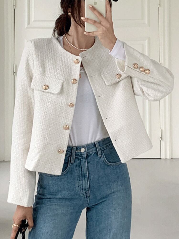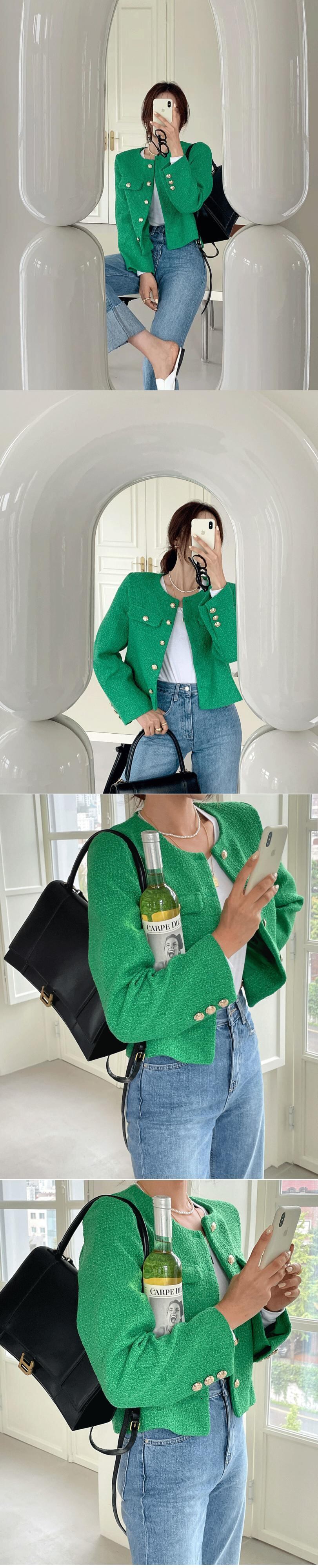 【EWQ】シングルブレストグリーンツイードウールジャケットシックボタン長袖ウールブレンドジャケットコート春秋トップス6935 ロング スプリング 春物 オータム 秋物